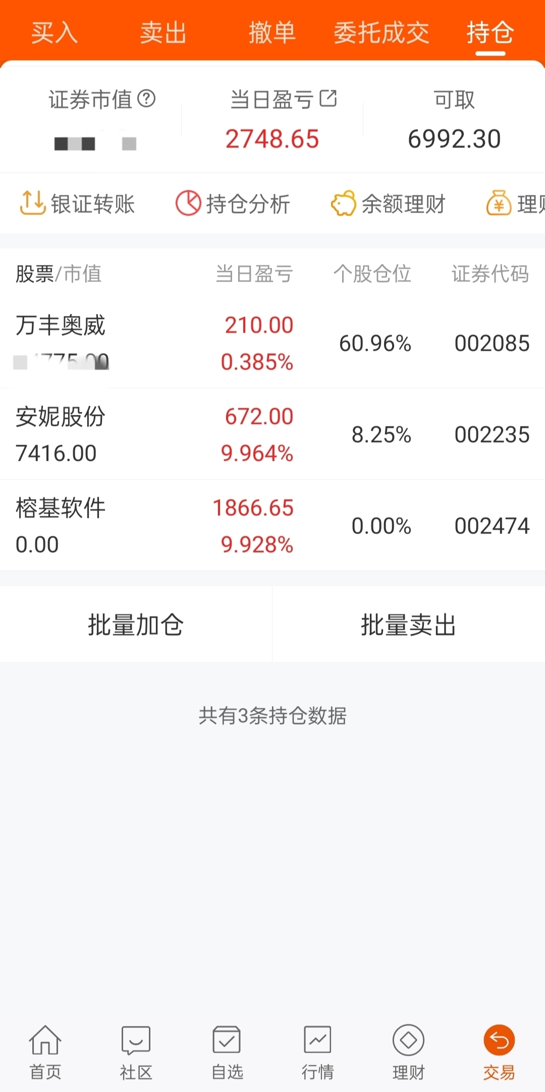 重仓的像条咸鱼,底仓的就涨到一塌糊涂,这就是命呀;在安妮这里就像是收万丰的利息