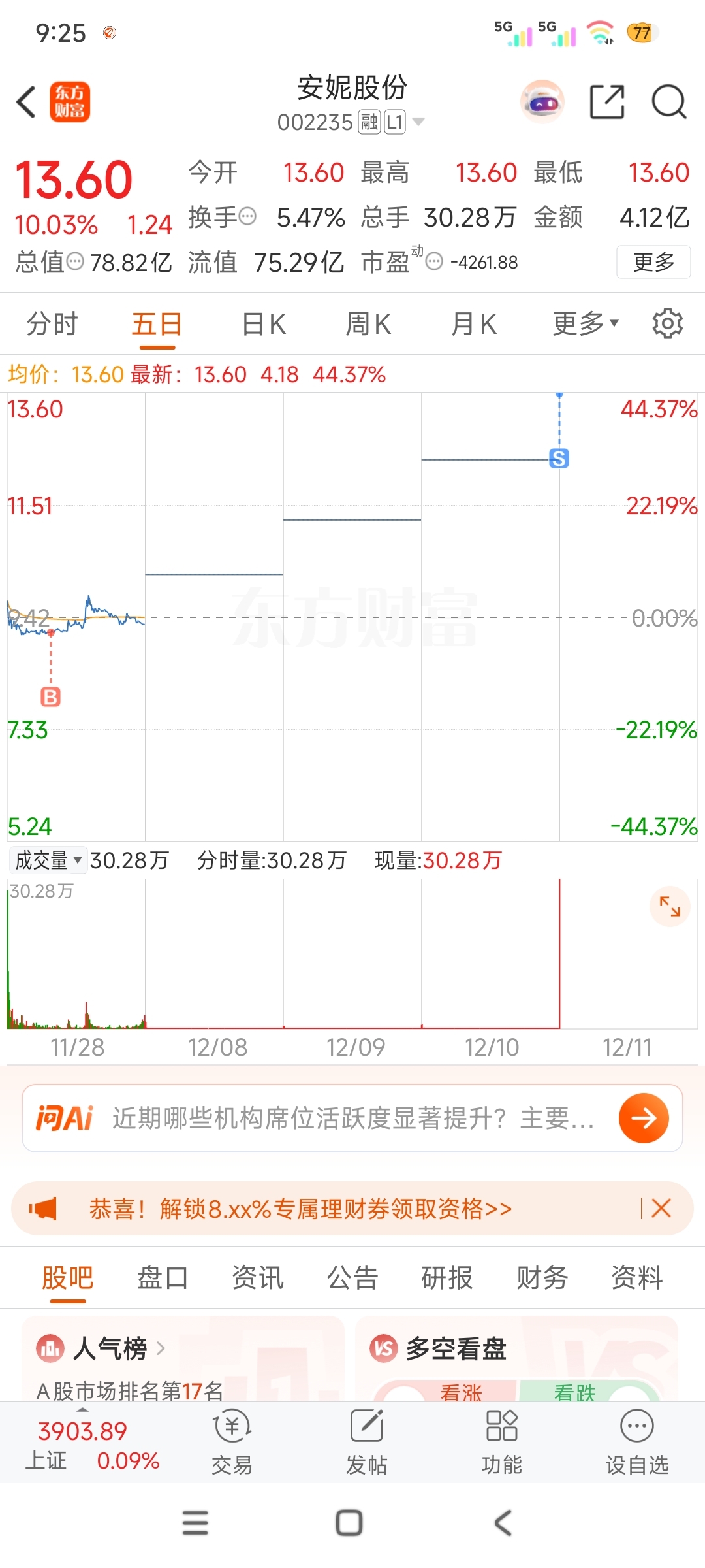 吃了四个板有多,安全第一先规避一下风险吧,等等看机会再买回。