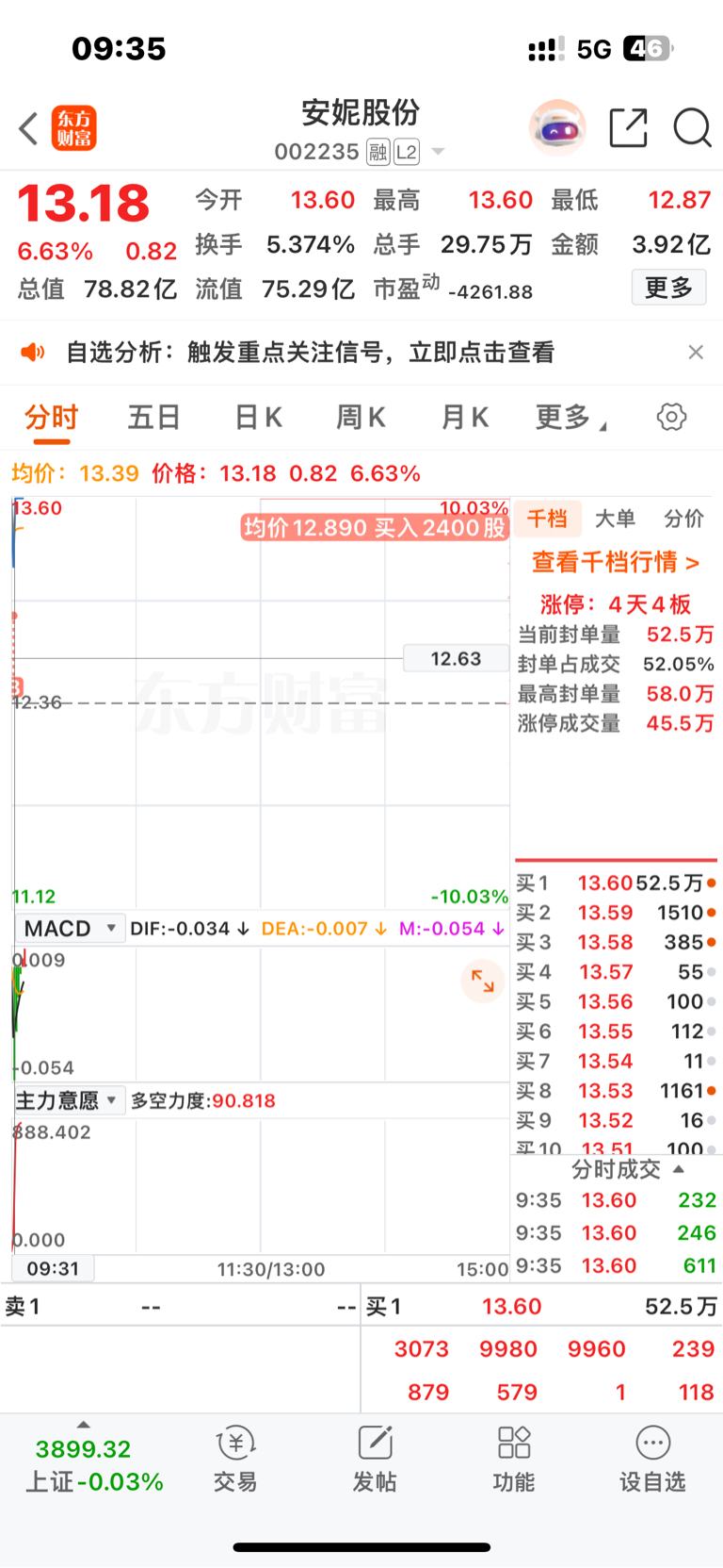 $安妮股份(SZ002235)$ 终于给机会加仓了