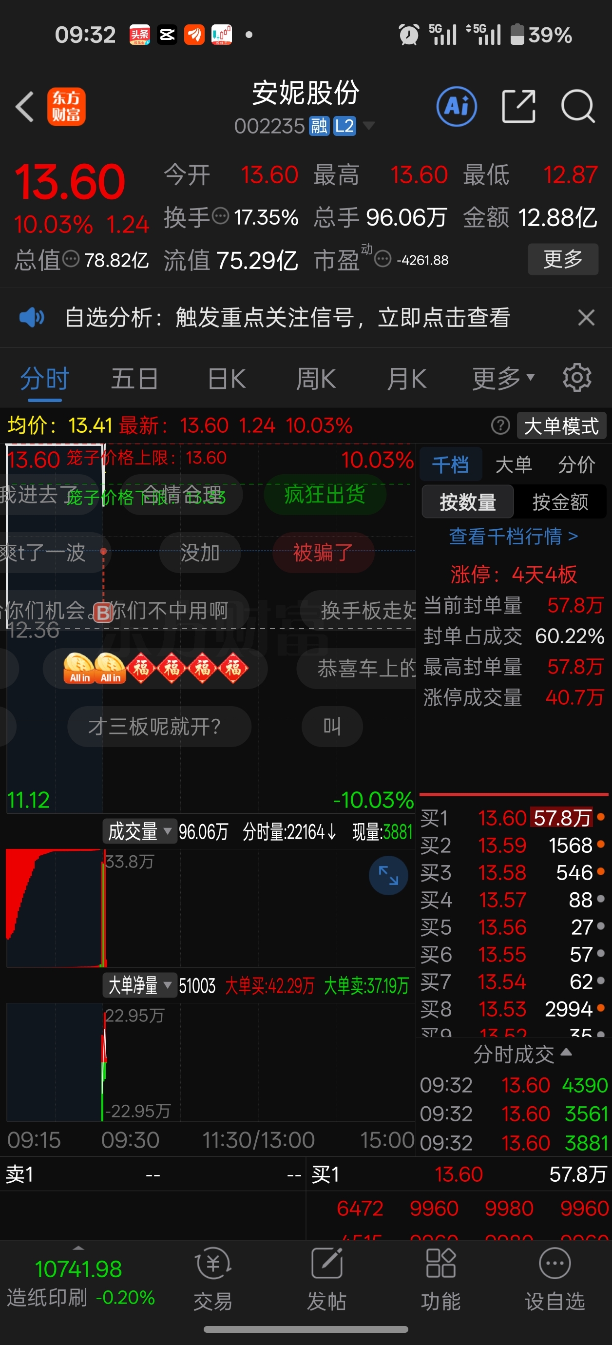 $安妮股份(SZ002235)$ 买买买我买的谁的筹码,