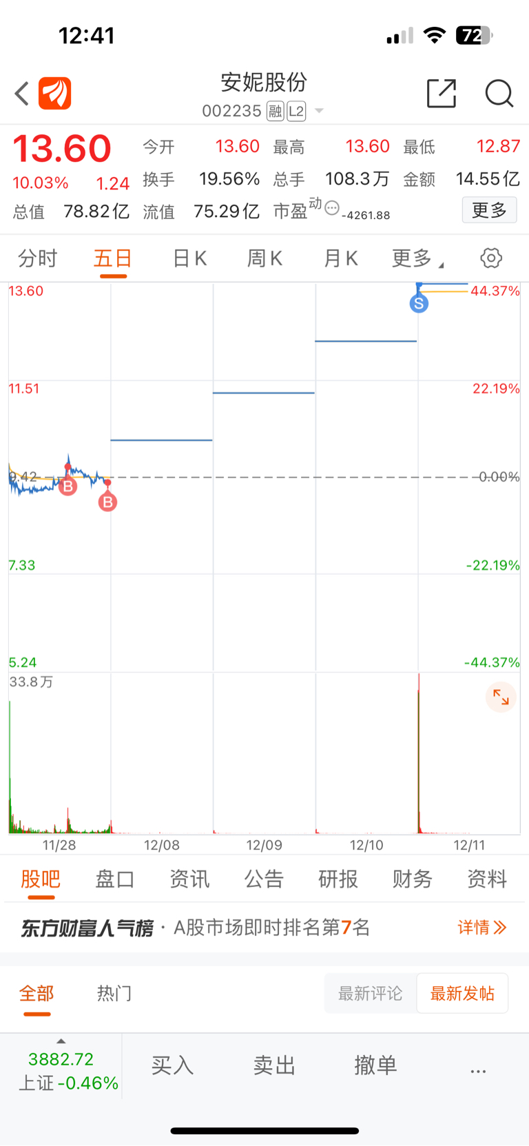 $安妮股份(SZ002235)$ 我先撤退了,大家继续吃肉,加油!