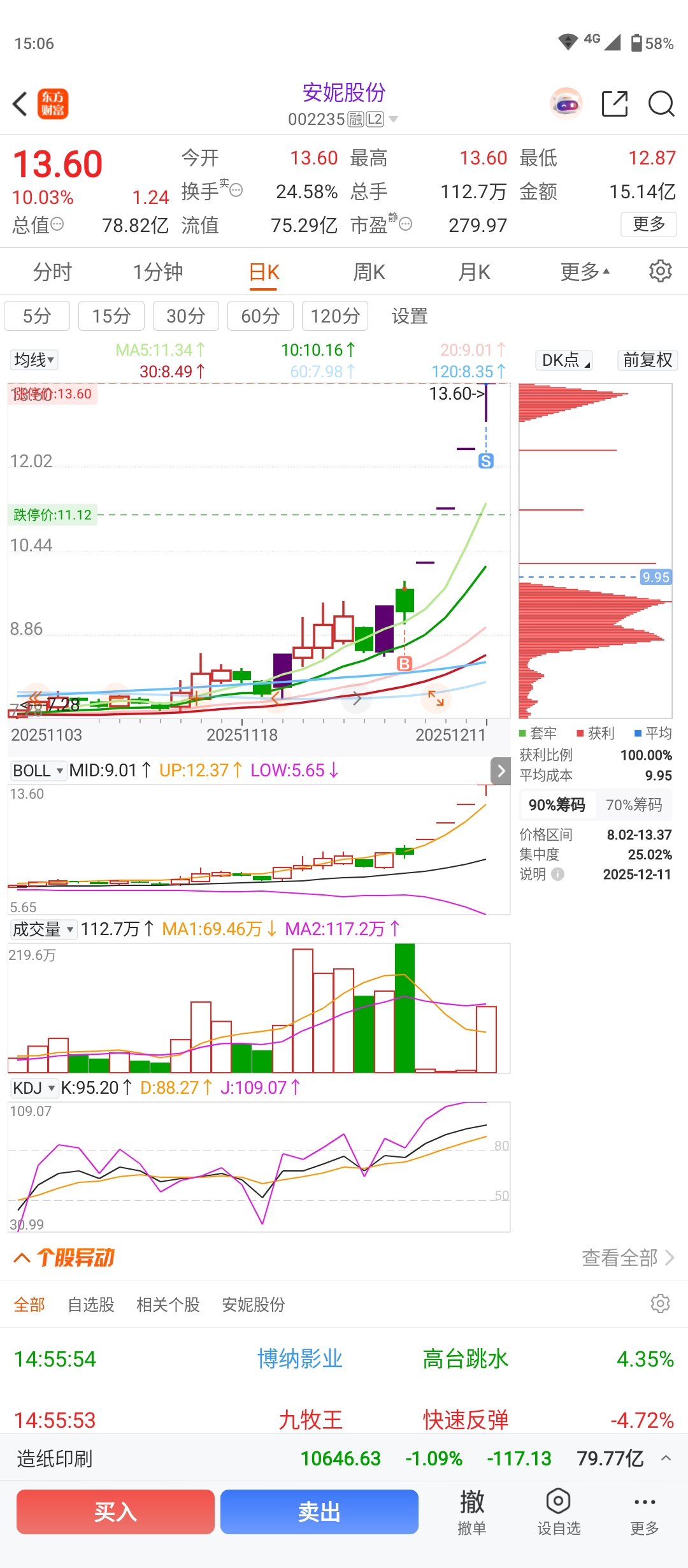 $安妮股份(SZ002235)$ 明天想接回来,如果明天不死死封住涨停板,大概会跌倒什么价位?今天可惜了,竞价感觉会开板,想着应该开板后会等一段时间再封上,结果一回来就封的死死的。出去后还追高