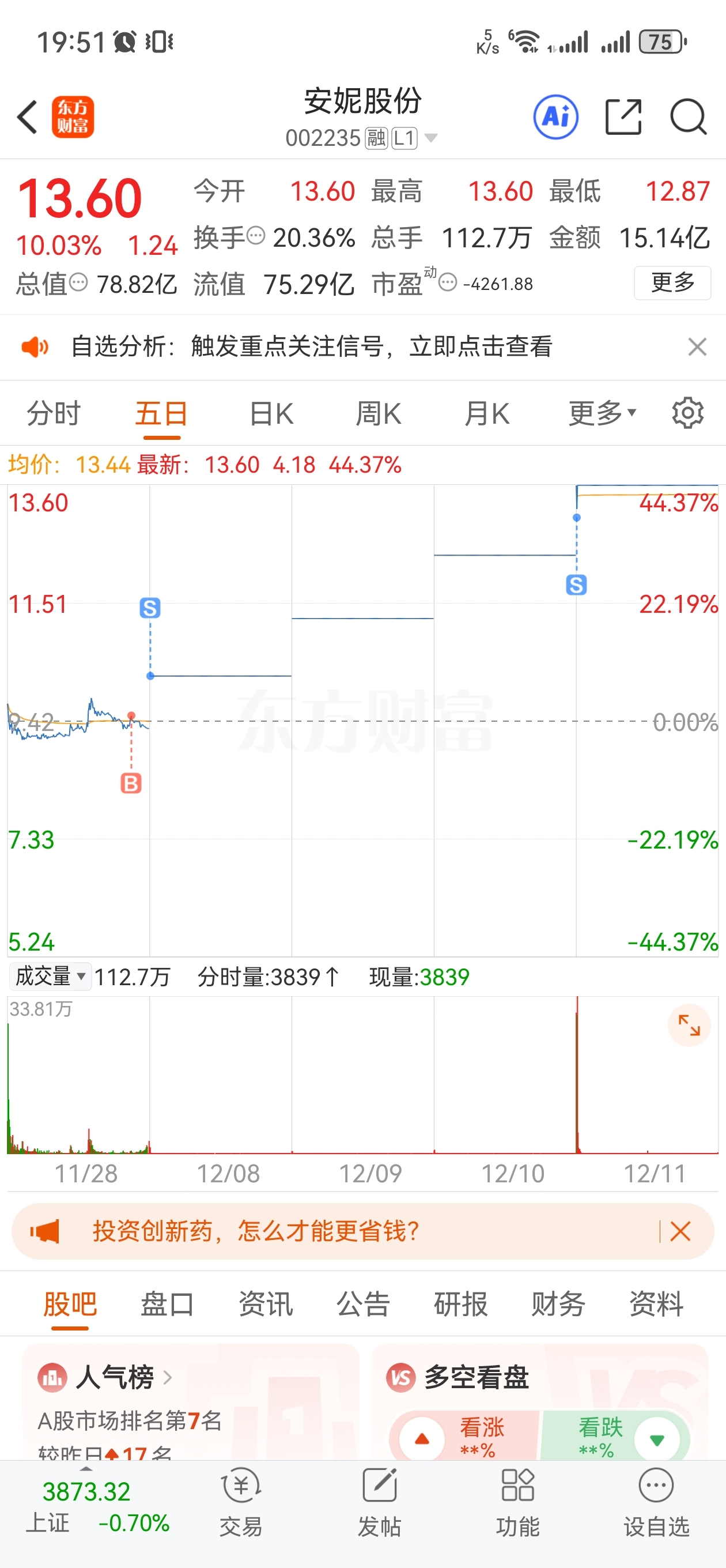 $安妮股份(SZ002235)$ 成功被洗掉 留下的各位发财