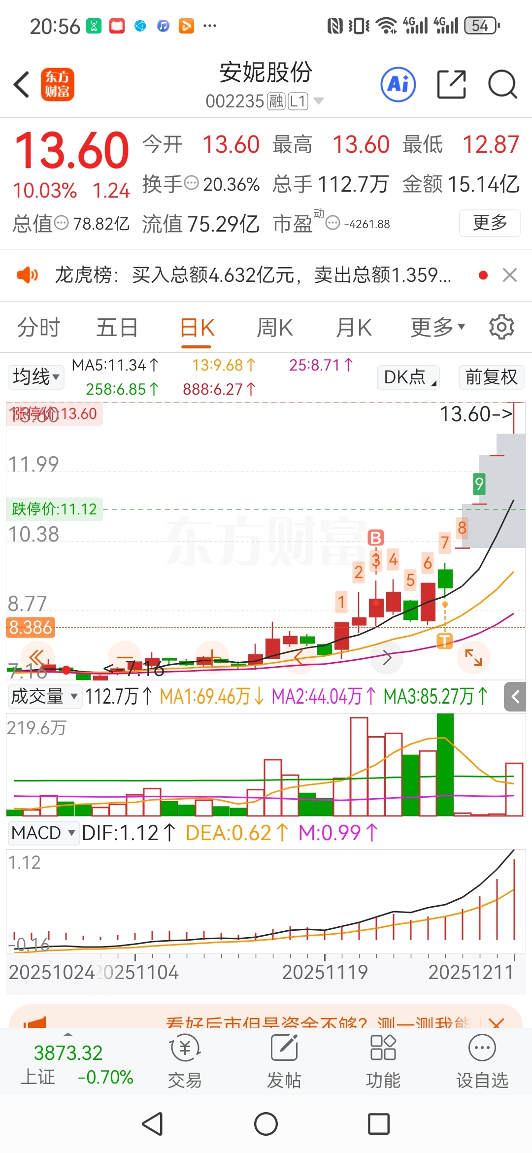 $安妮股份(SZ002235)$ 如果明天早上低开或开板就是闪人的时候, 鱼尾行情 小心卡住喉咙!