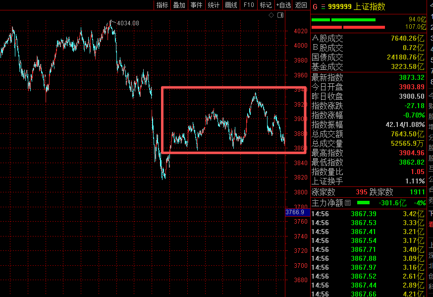 昨天缠哥对指数还是蛮担心的,昨天早盘缠哥也是预判指数要走弱了,但今天缠哥对指数比较乐观呢,觉得今天指数会震荡走强呢,从缠论走势结构拆解指数看,指数小级别的走势构筑中枢结构呢,昨天也没跌破这个中枢结构,所以按缠论走势来推演看,指数今天还是有向上走强的预期。