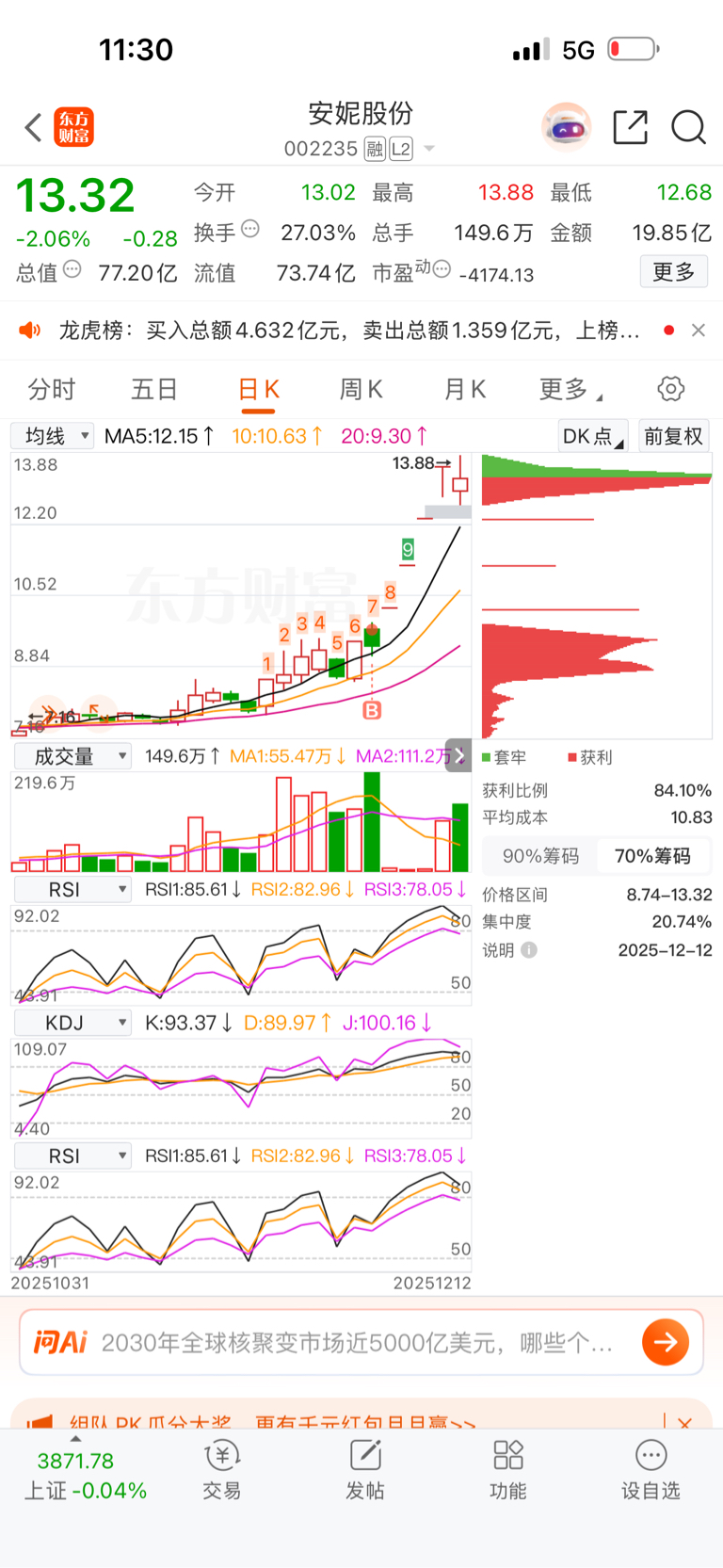 $安妮股份(SZ002235)$ 下午不拉板就走啦