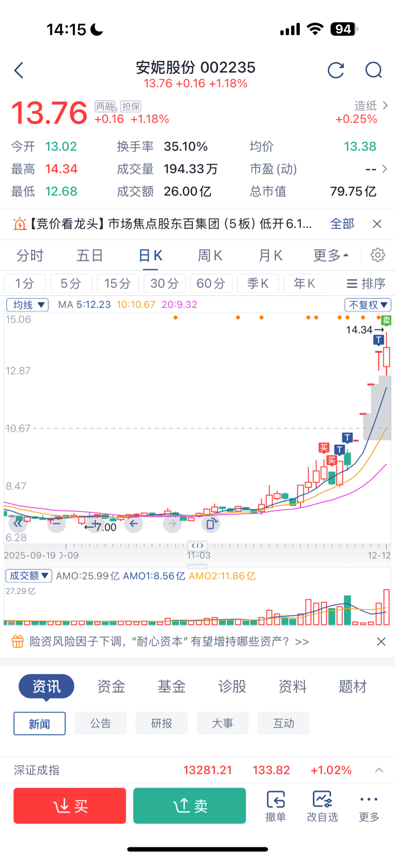 $安妮股份(SZ002235)$ 兄弟们一定要涨停呀,我不格局了,但是你们要发财,我买的少赚了才一万多点唉,祝你们发财