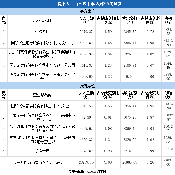 多主力现身龙虎榜,安妮股份换手率达44.17%(12-12)