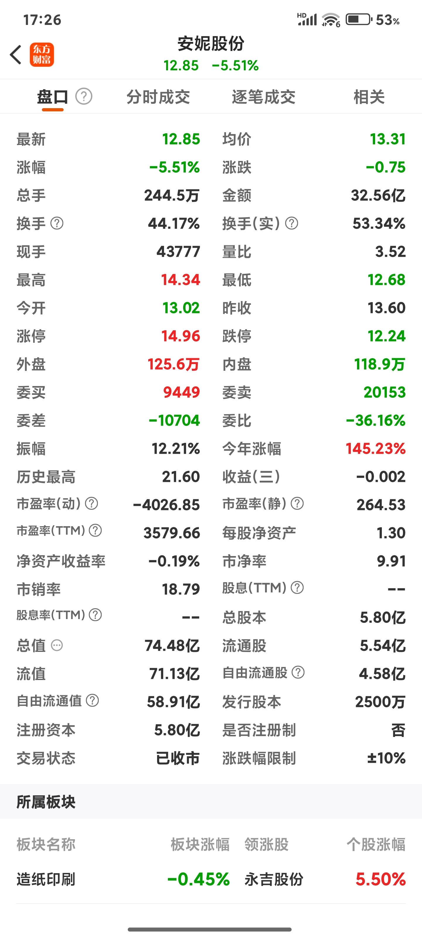 $安妮股份(SZ002235)$ 换手53.34%,下周一怎么操作呀?是涨还是跌呀?今天加仓了