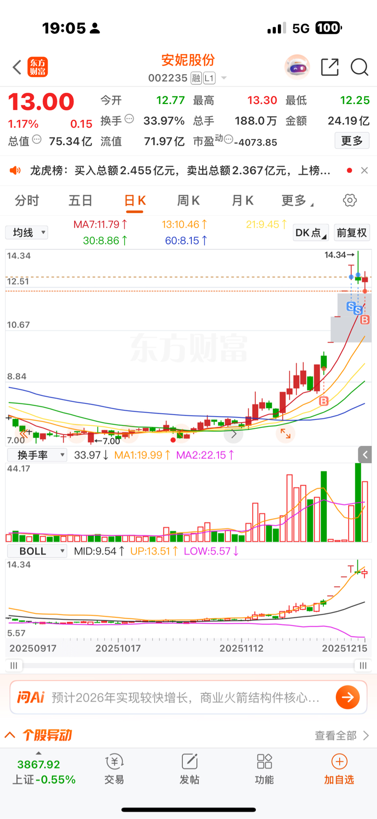 $安妮股份(SZ002235)$ 今天再买点看看明天会不会超预期