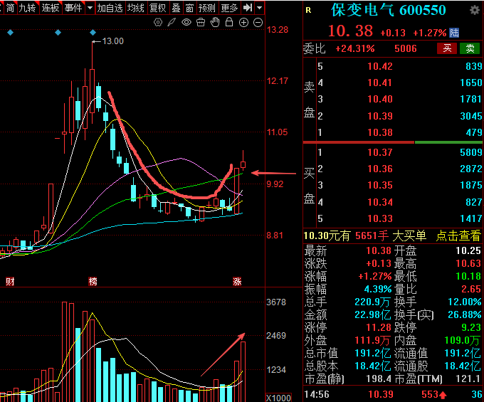 保变电气;虽然没能延续周五的涨停势能加速向上突破,反而冲高后有所回落,看着像是做多动能减弱,但在我看来,这更多就是短暂的盘中休整而已,对这票还是比较有信心的。当前AI电力短缺是大方向,电网设备板块也有望迎来持续活跃,而且个股本身已经经过持续调整蓄力,蓄力很充分,整体向上修复的趋势还是相当明显的。今天重点看一下电网设备板块的整体表现,要是板块能持续保持活跃,这票也有望再度呈现加速向上修复的趋势。
