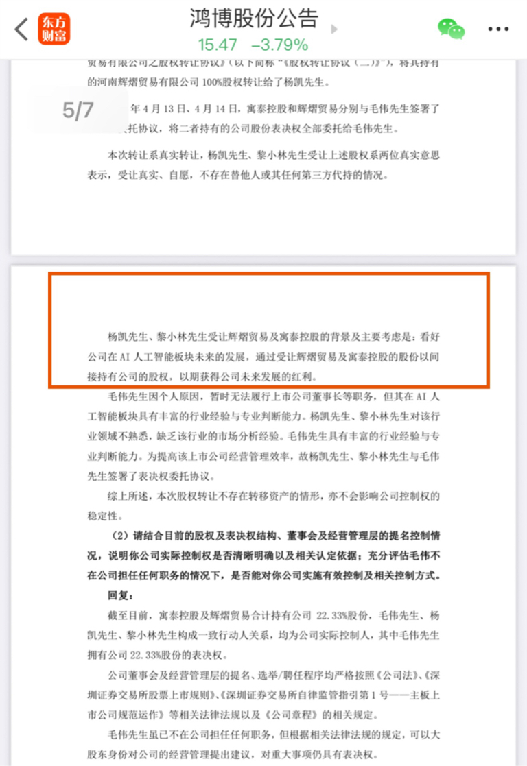 $安妮股份(SZ002235)$ $鸿博股份(SZ002229)$ 鸿博股份23年大股东股权转让时也是说购买人看好Ai行业发展