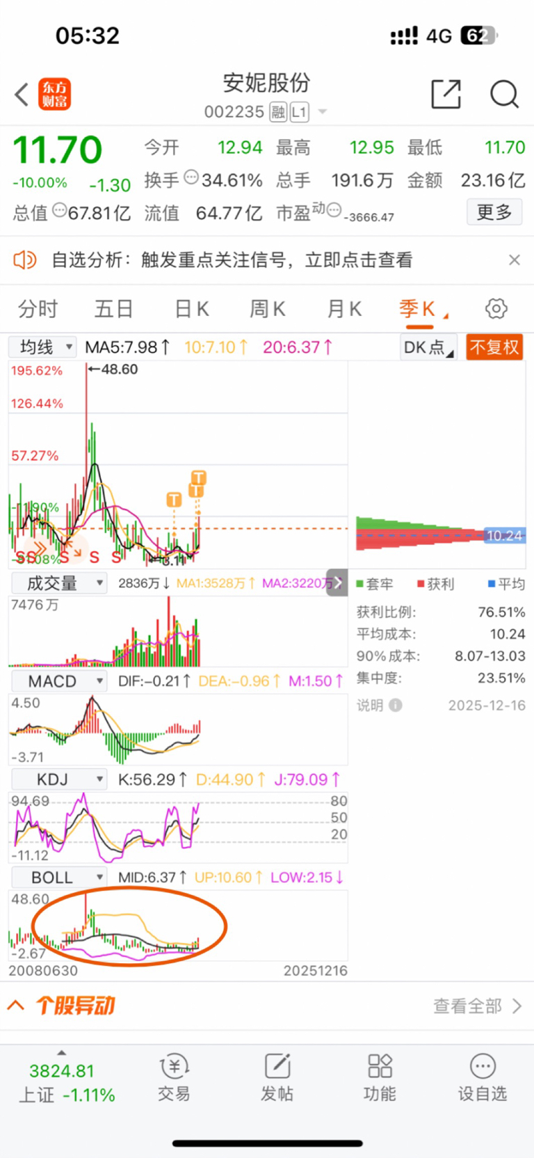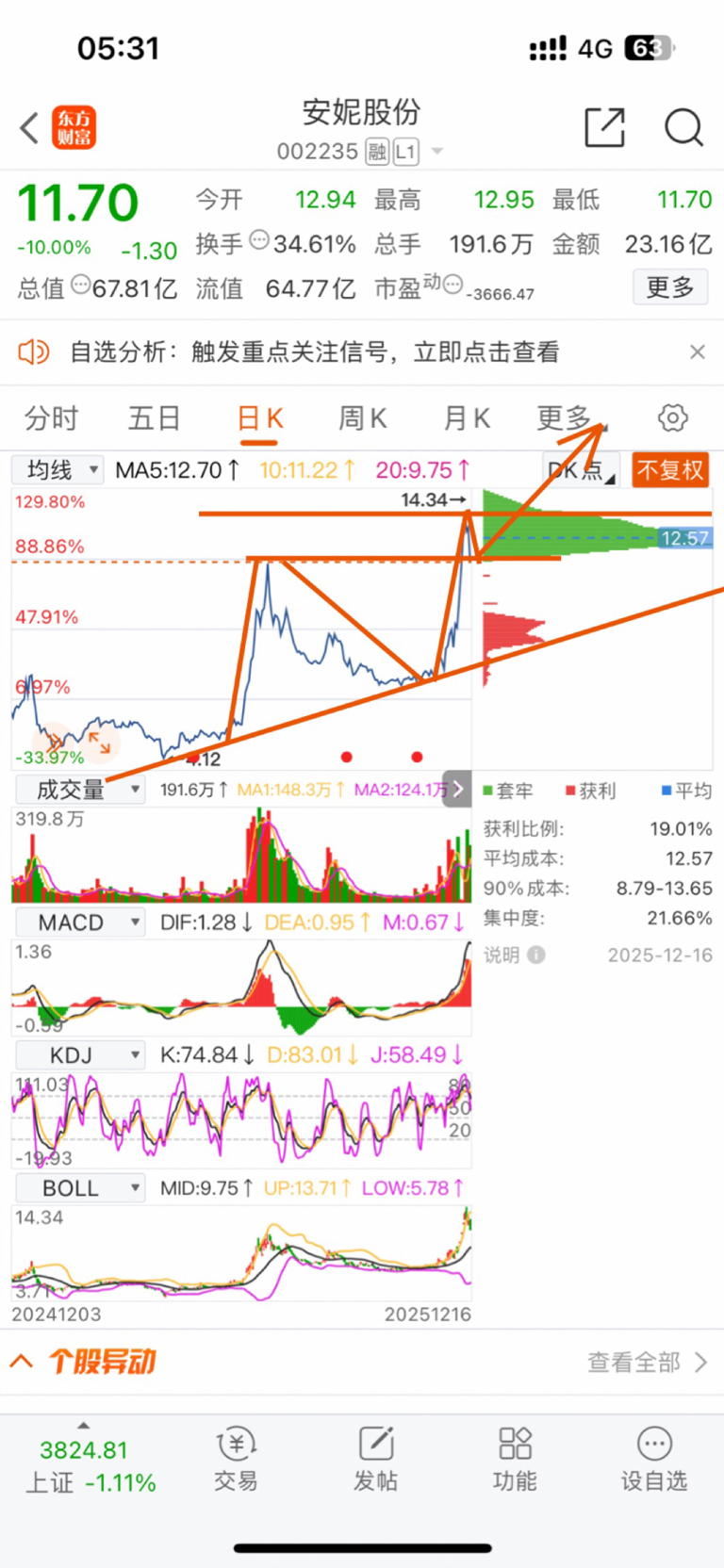这个票就几个字概括:稳中有升,前期获利盘的兑现,上周4一家独大有不满的情绪回调。