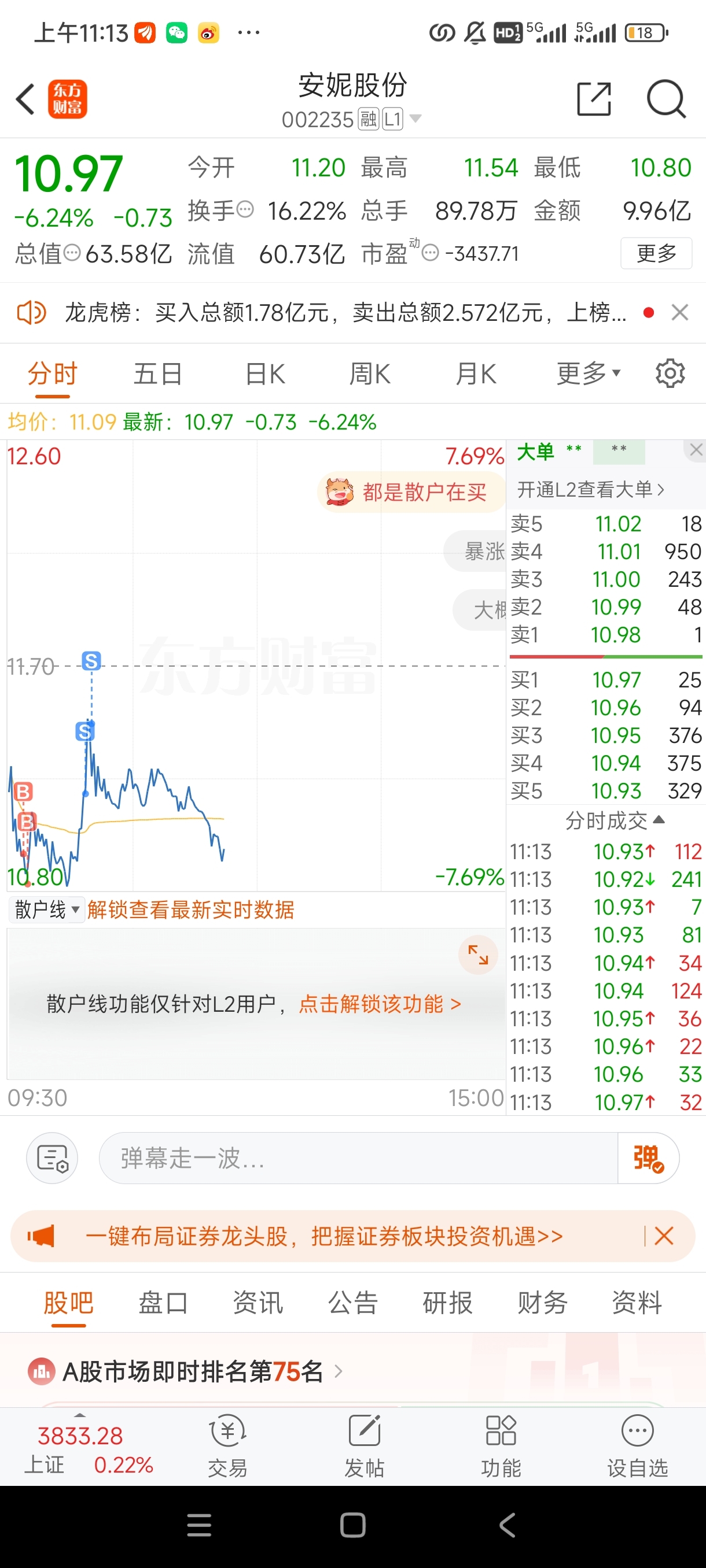 $安妮股份(SZ002235)$ 卖了,等跌停买