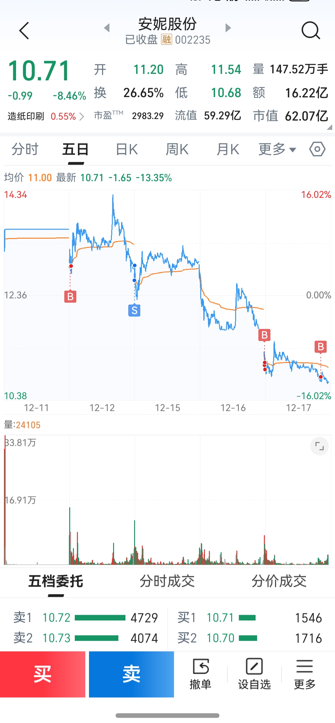 $安妮股份(SZ002235)$ 进点底仓,明天绿两个点直接加满