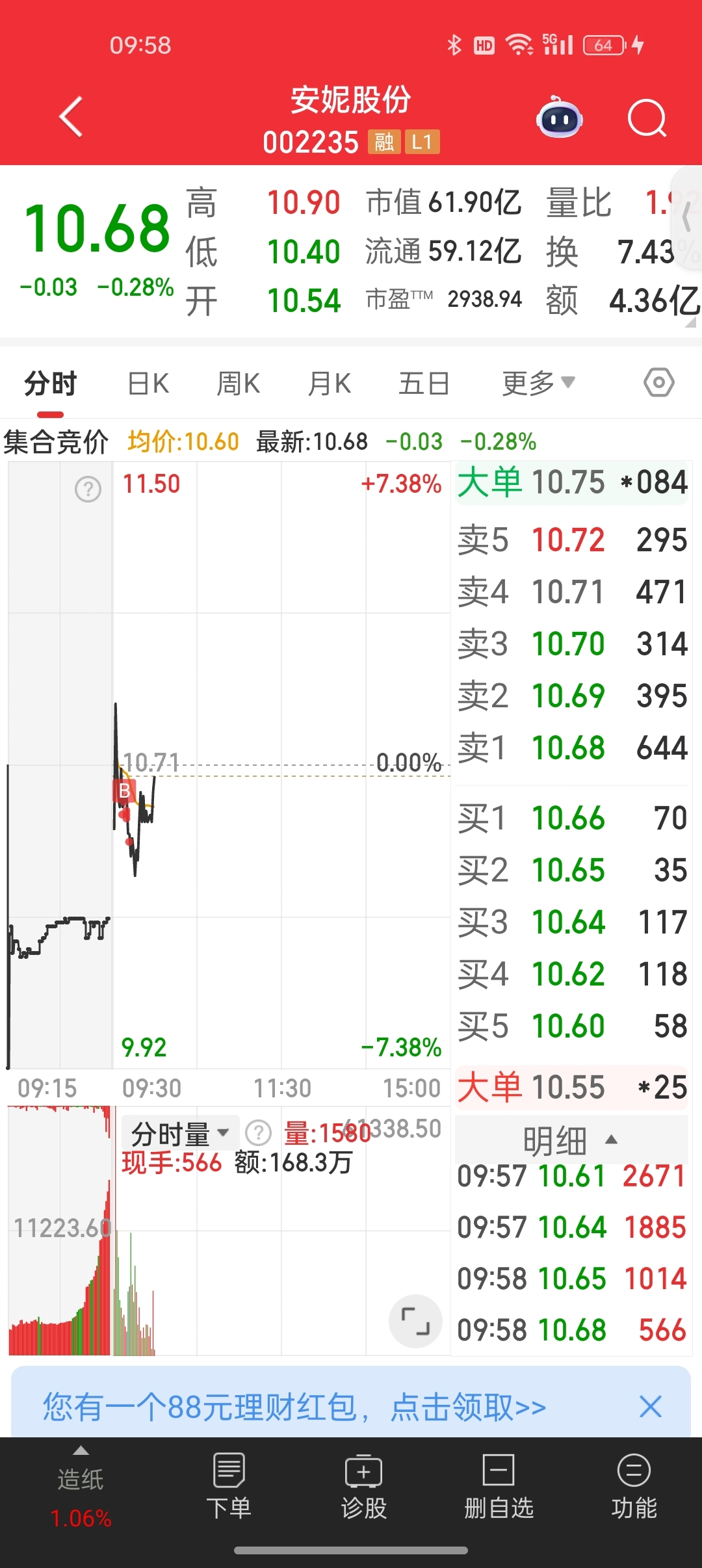 鄙人不才,全仓买入,杠杆拉满。成本10.549,仓位100%。今日基操已完成,晒