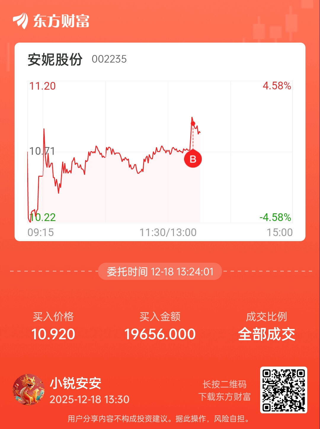 温馨提示: 1.根据《证券法》规定,禁止编造、传播虚假信息或者误导性信息,扰乱证券市场;2.用户在本社区发表的所有资料、言论等仅代表个人观点,与本网站立场无关,不对您构成任何投资建议。用户应基于自己的独立判断,自行决定证券投资并承担相应风险。《东方财富社区管理规定》