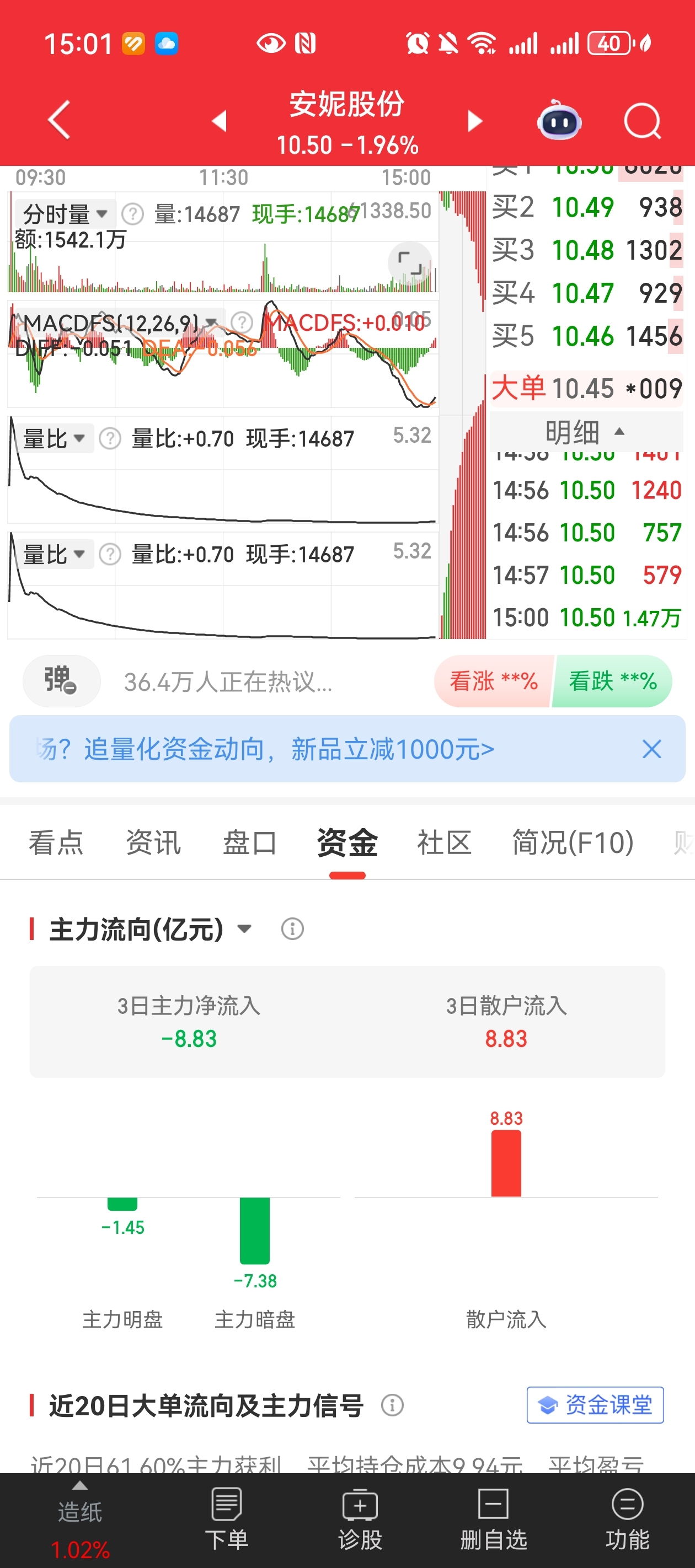 $安妮股份(SZ002235)$ 五天暗盘流出12亿,三天9个亿,今天尾盘出了8000多万,还敢买吗?真服了你们了。我是被深套了,但是你们越买,我越没救了,最后只能是我们一起没……