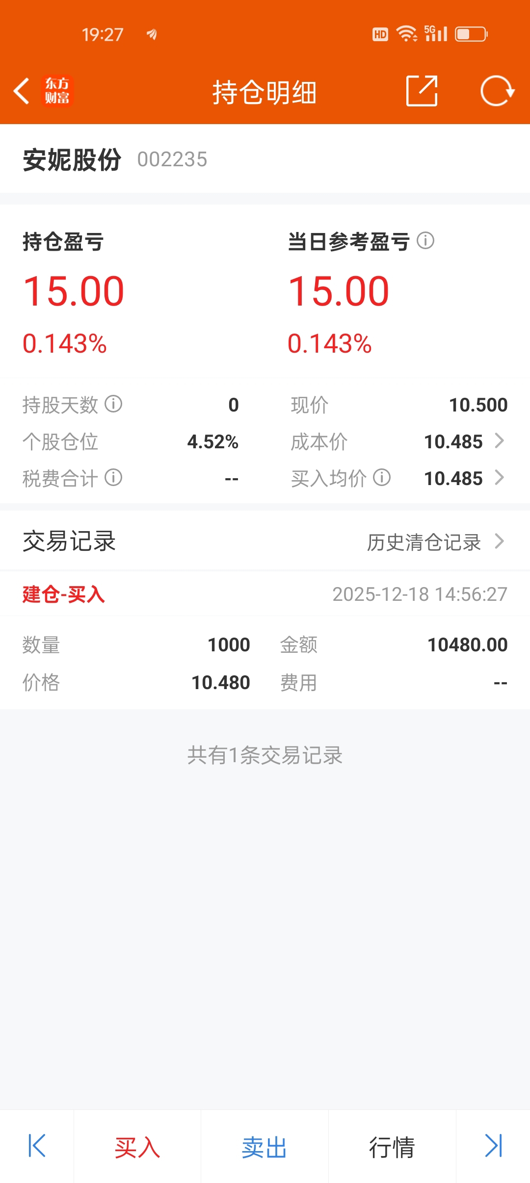 尾盘进了一万。看看虚实。希望明天能涨2个点,让我改善一下伙食