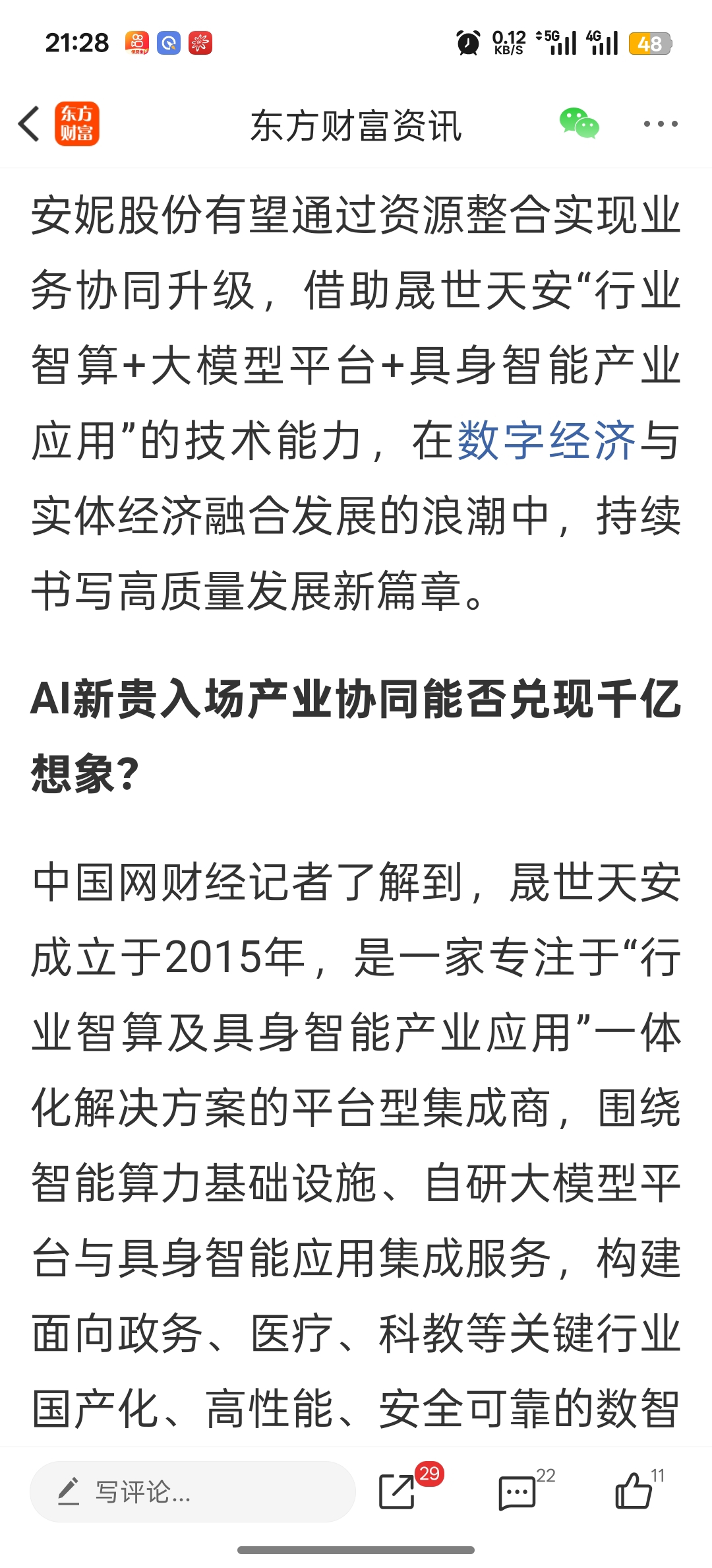 $安妮股份(SZ002235)$ 那个脑摊儿写的文章啊。还千亿市值,能破百亿都d炸天了!