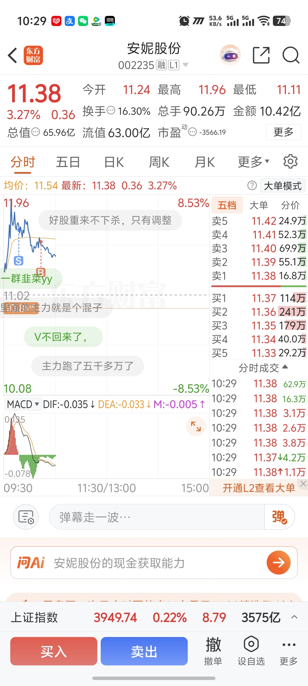 $安妮股份(SZ002235)$ 昨天发帖冲高就跑,我今天六个点跑了,后面看他承接力很强势,反手接回来,没有跌破开盘价一直横盘,很强势在格局一天明天不涨停直接baybay