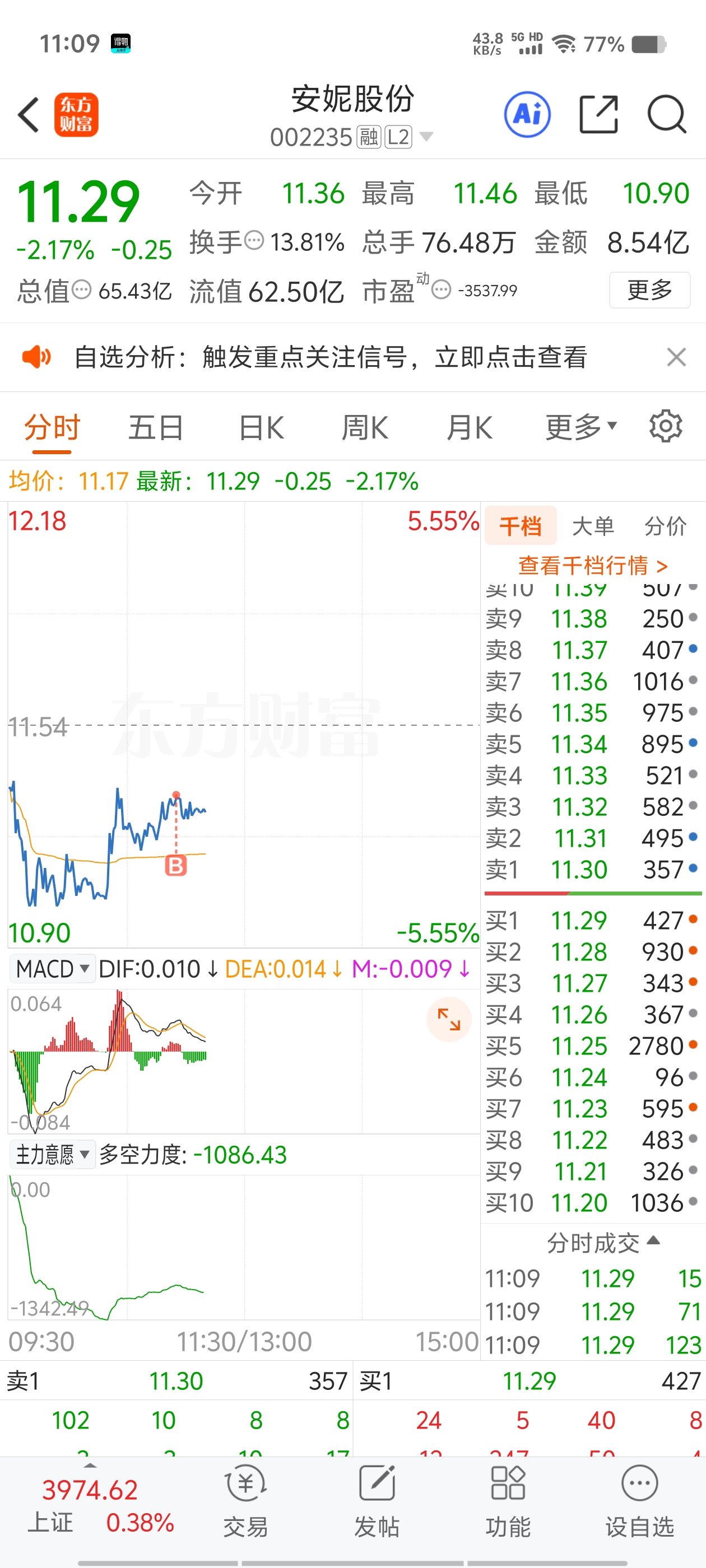 $安妮股份(SZ002235)$ 家人们,不好意思买崩了