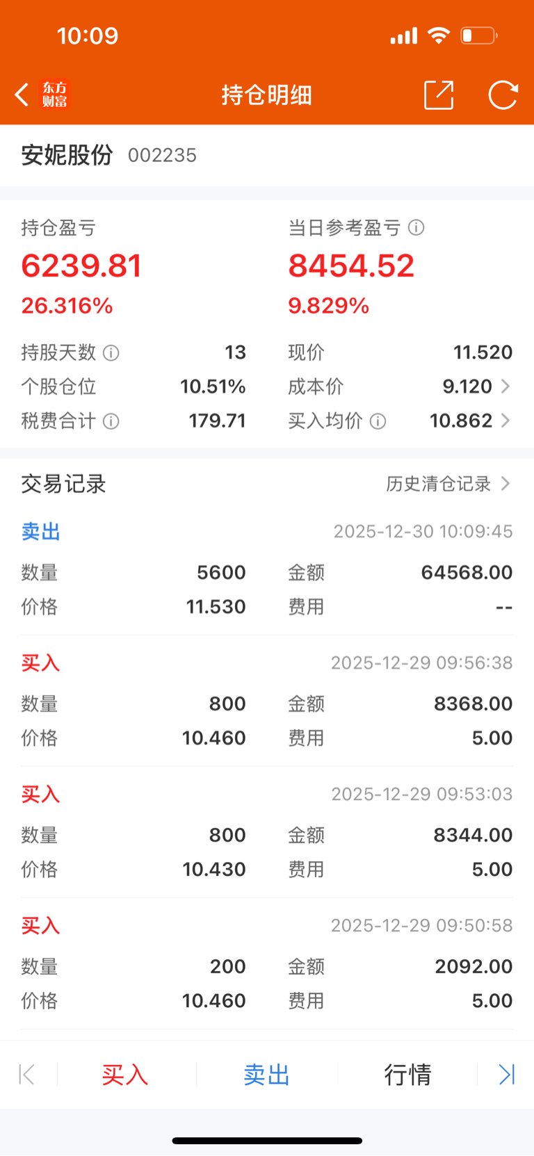 $安妮股份(SZ002235)$ 落袋为安,后面再怎么涨与我无关了