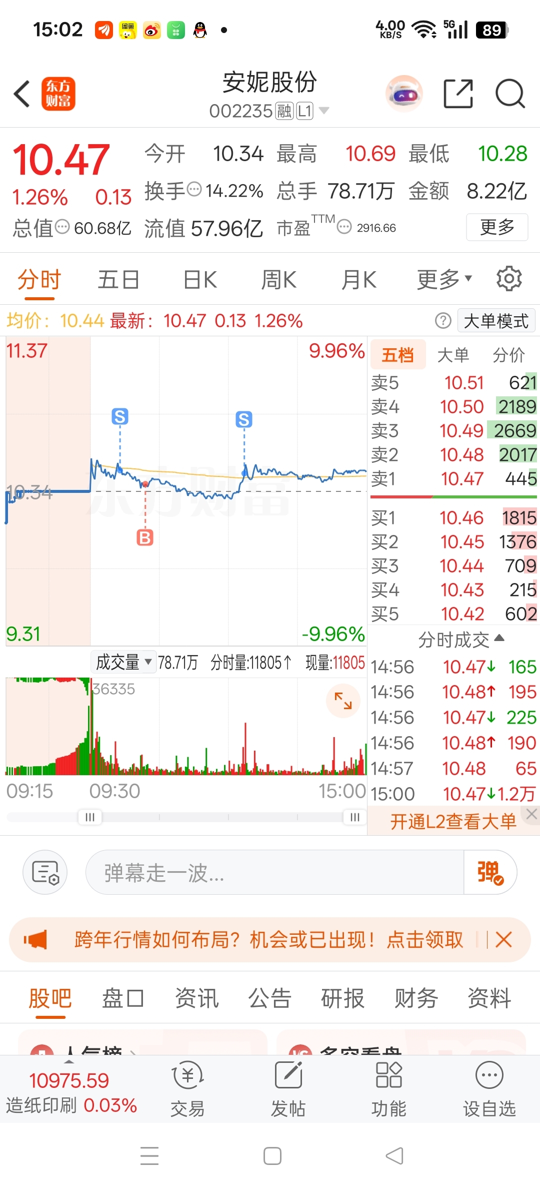$安妮股份(SZ002235)$ 也算是开门红吧,赚了1.5个点
