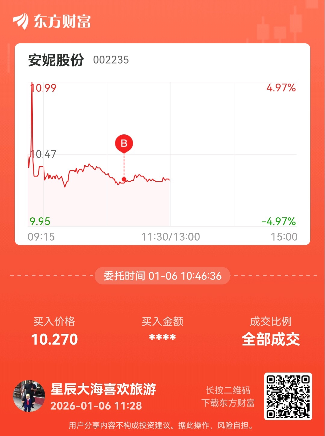 温馨提示: 1.根据《证券法》规定,禁止编造、传播虚假信息或者误导性信息,扰乱证券市场;2.用户在本社区发表的所有资料、言论等仅代表个人观点,与本网站立场无关,不对您构成任何投资建议。用户应基于自己的独立判断,自行决定证券投资并承担相应风险。《东方财富社区管理规定》