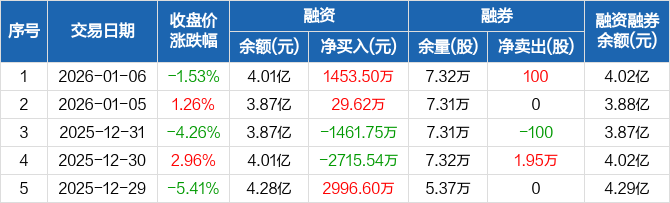 安妮股份:融资净买入1453.5万元,融资余额4.01亿元(01-06)