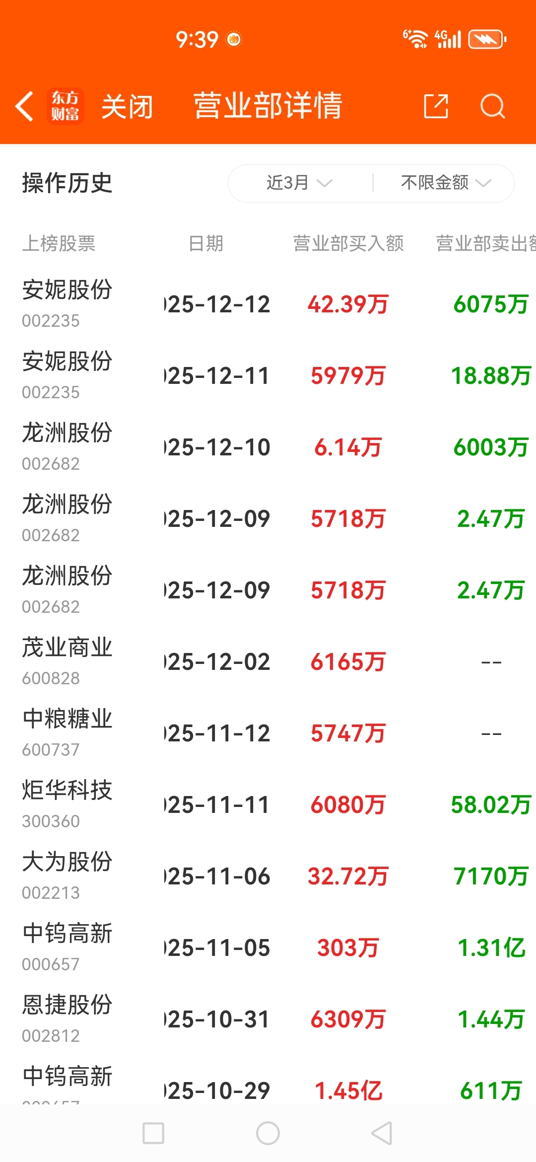 $安妮股份(SZ002235)$ 按说这个营业部卖出了6000多万,应该还会去买别的股而上榜啊?怎么就没有动静呢?