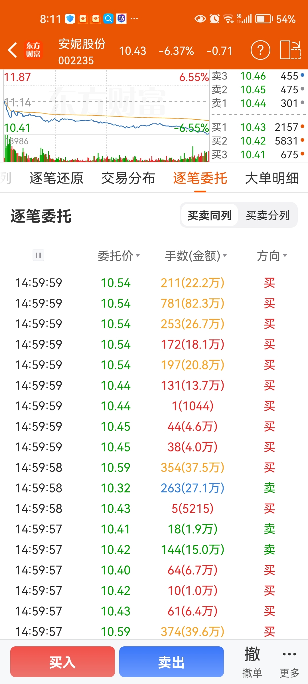 $安妮股份(SZ002235)$ 尾盘抢筹,今天高开高走,加油