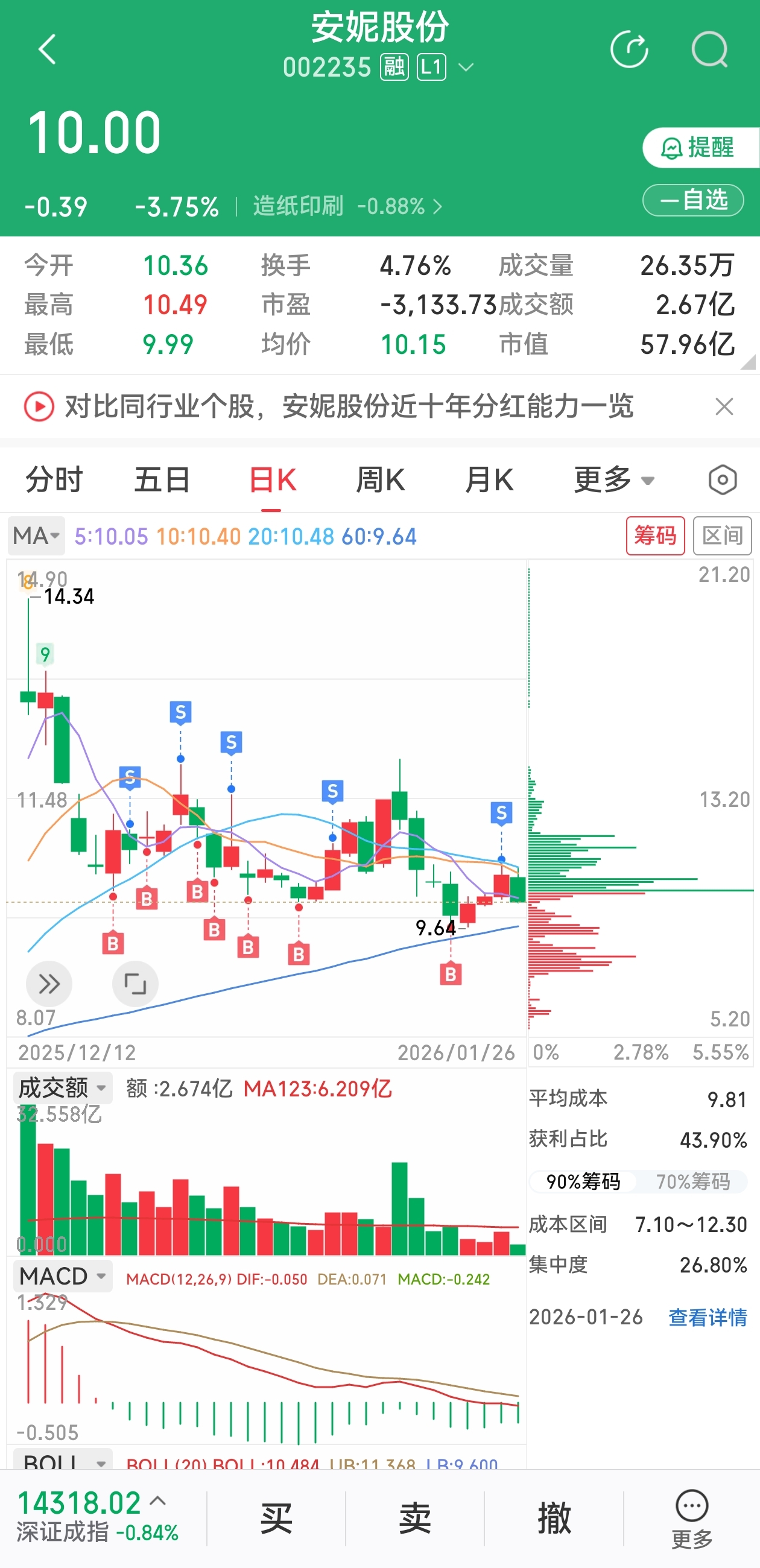 $安妮股份(SZ002235)$ 还记得我说的看七进七出吗?还好上周五跑得快