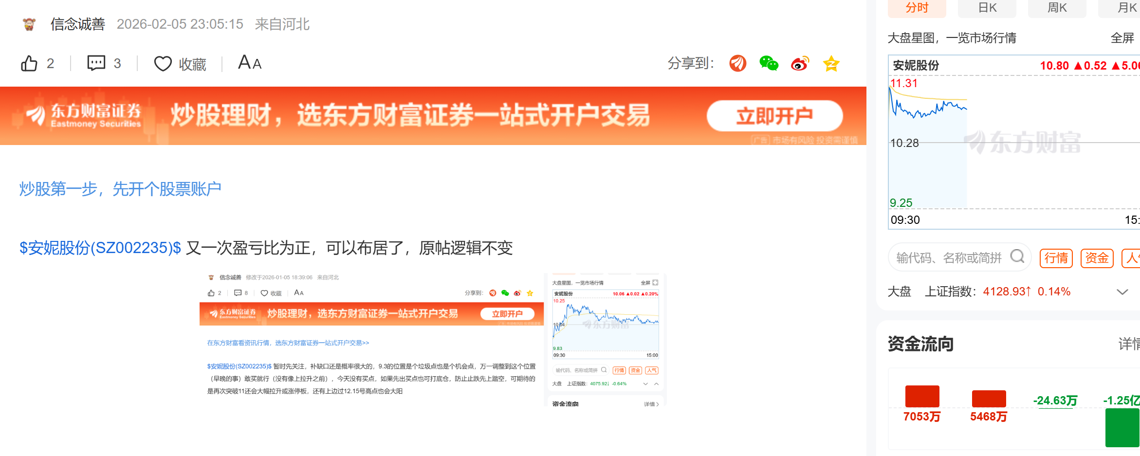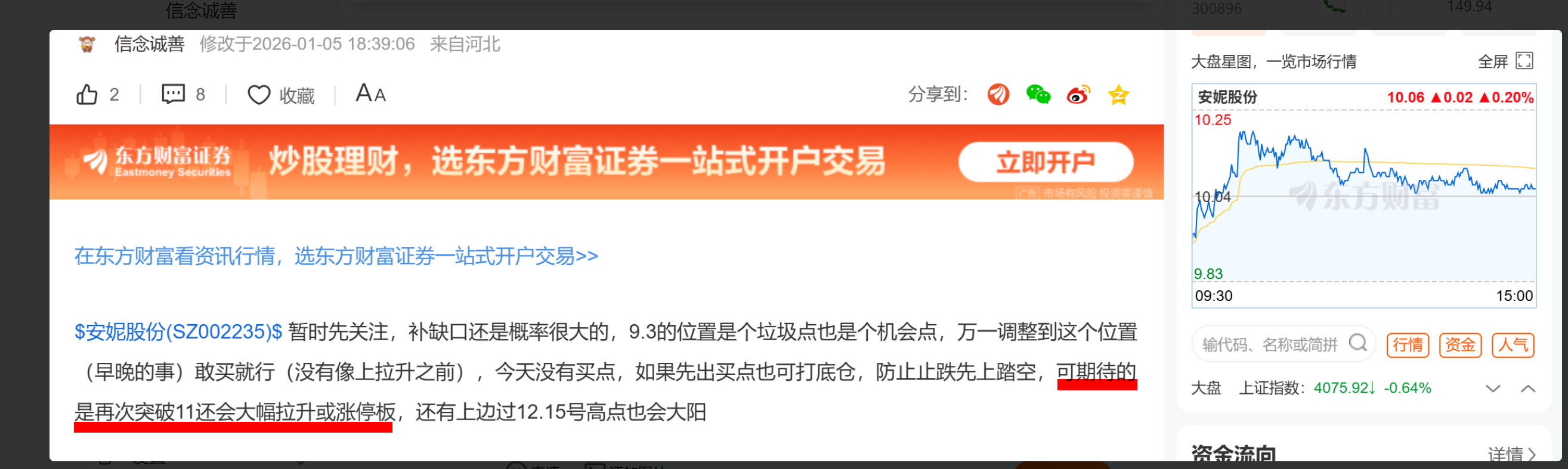 温馨提示: 1.根据《证券法》规定,禁止编造、传播虚假信息或者误导性信息,扰乱证券市场;2.用户在本社区发表的所有资料、言论等仅代表个人观点,与本网站立场无关,不对您构成任何投资建议。用户应基于自己的独立判断,自行决定证券投资并承担相应风险。《东方财富社区管理规定》