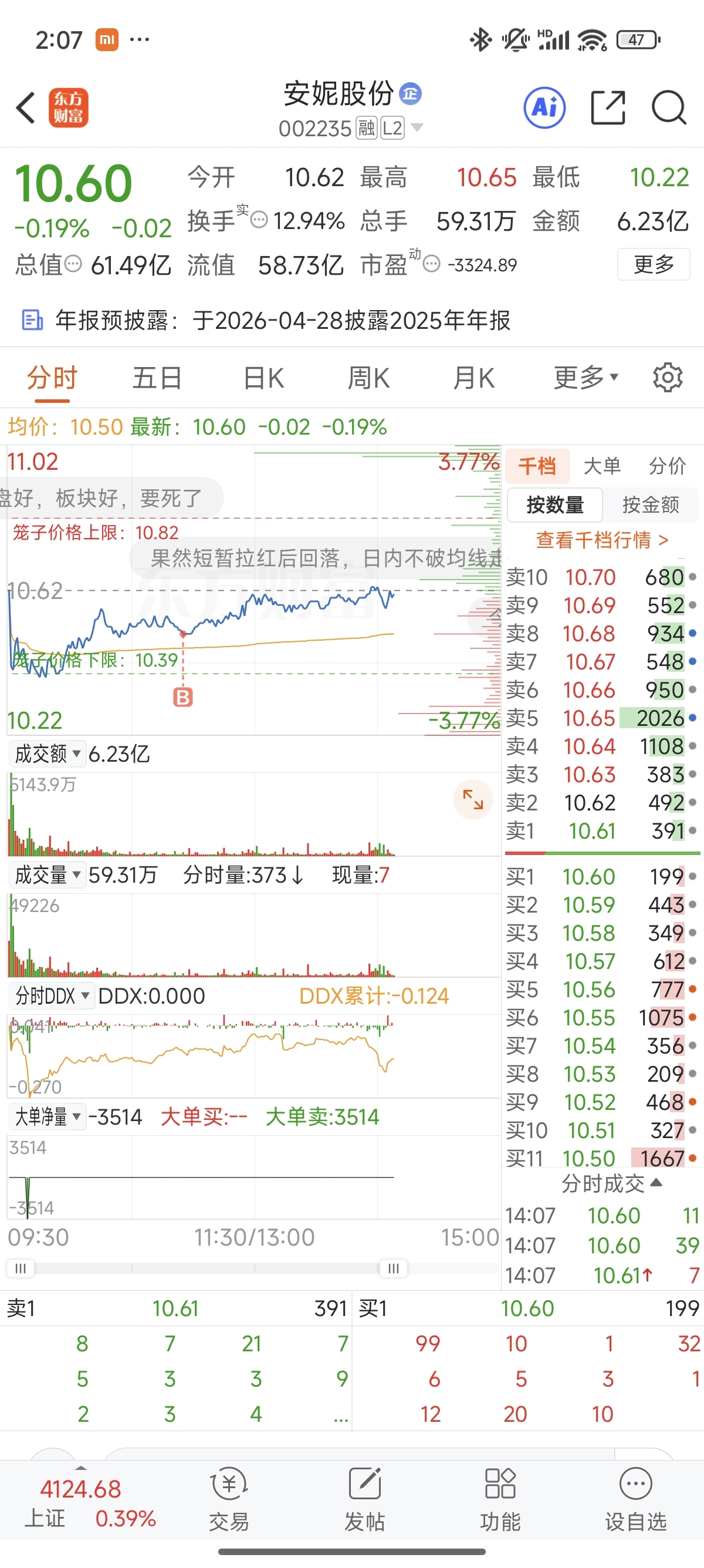 温馨提示: 1.根据《证券法》规定,禁止编造、传播虚假信息或者误导性信息,扰乱证券市场;2.用户在本社区发表的所有资料、言论等仅代表个人观点,与本网站立场无关,不对您构成任何投资建议。用户应基于自己的独立判断,自行决定证券投资并承担相应风险。《东方财富社区管理规定》