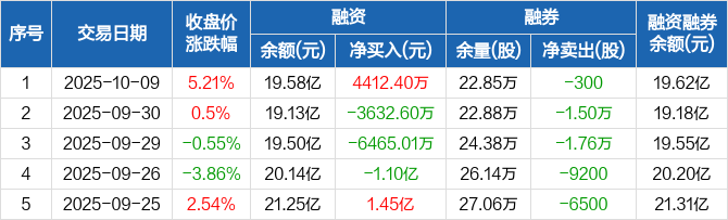 大华股份:融资净买入4412.4万元,融资余额19.58亿元(10-09)