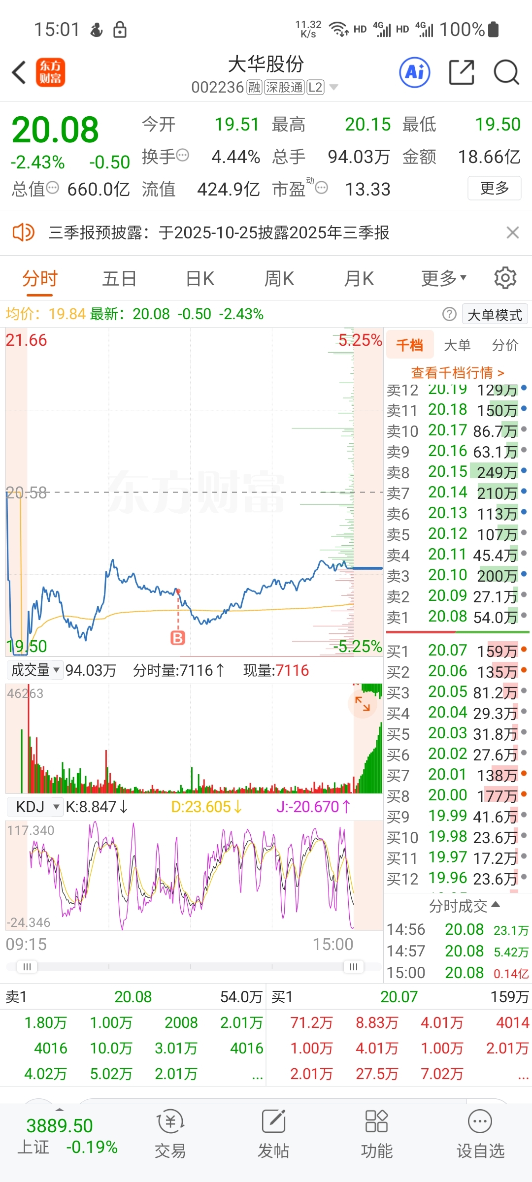 $大华股份(SZ002236)$ 实盘收盘记录,今日补仓4.5w