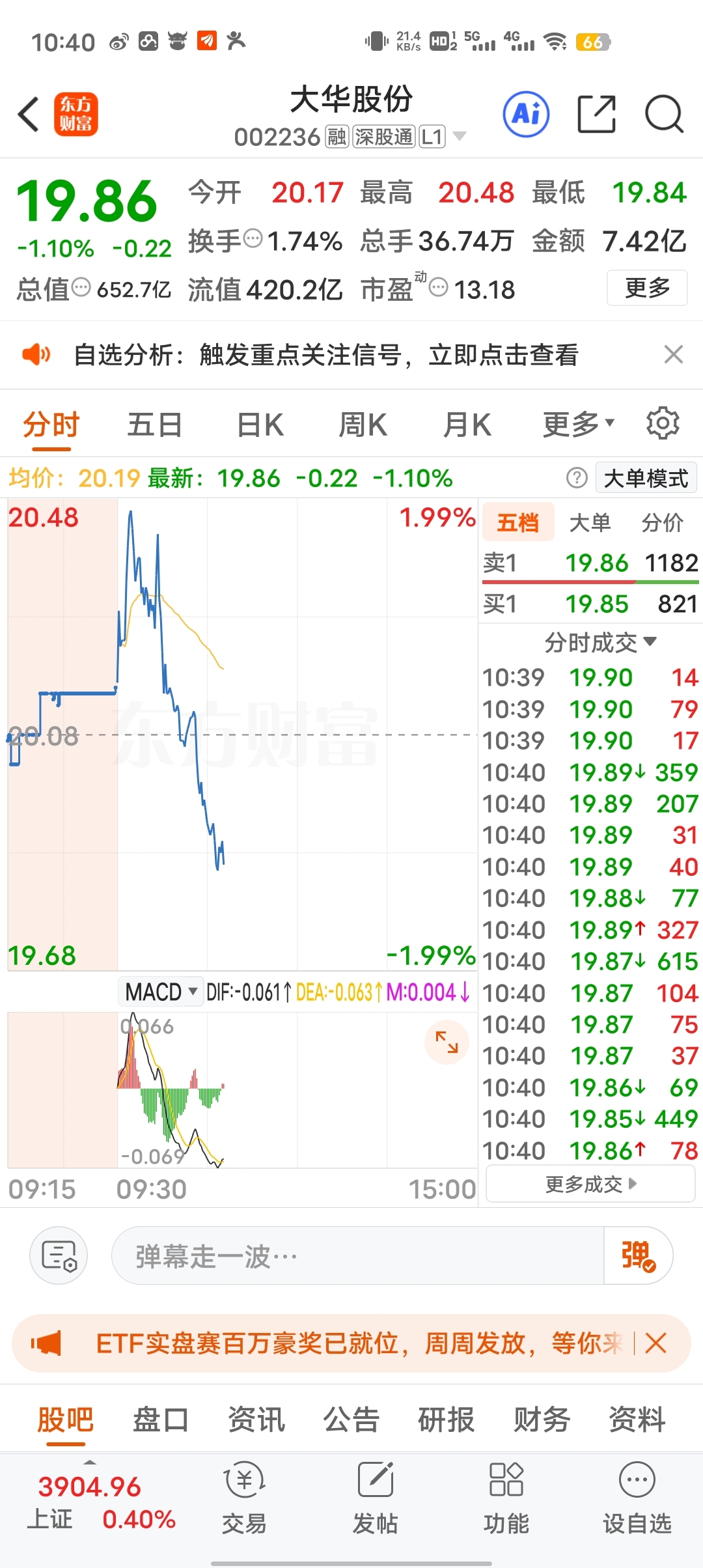 我把大华股份换成海康威视了,建议大家都这样。很爽快。