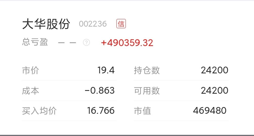 $大华股份(SZ002236)$ 来吧,越跌我越补。