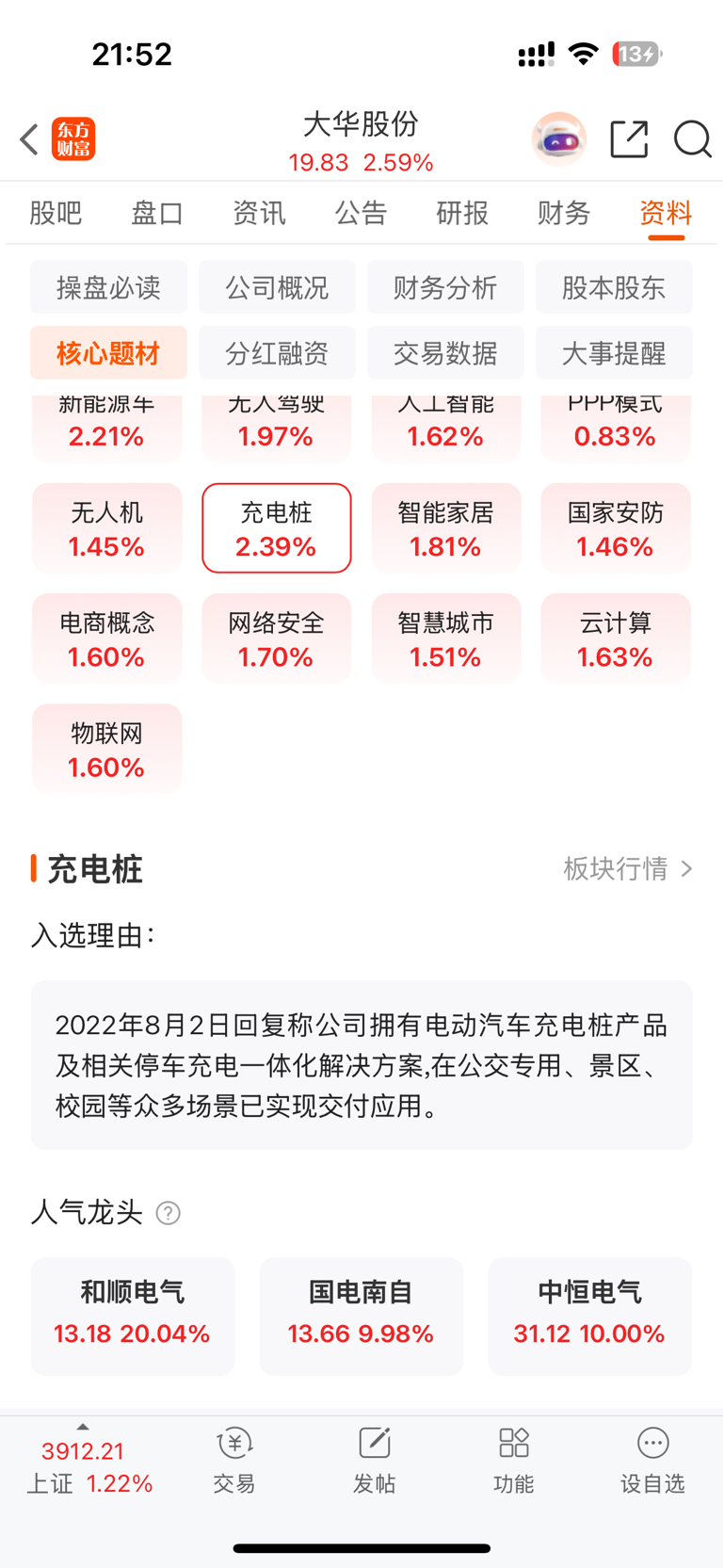 我觉得这是实质利好,大华可是有充电桩概念的哦,明天不要高开!