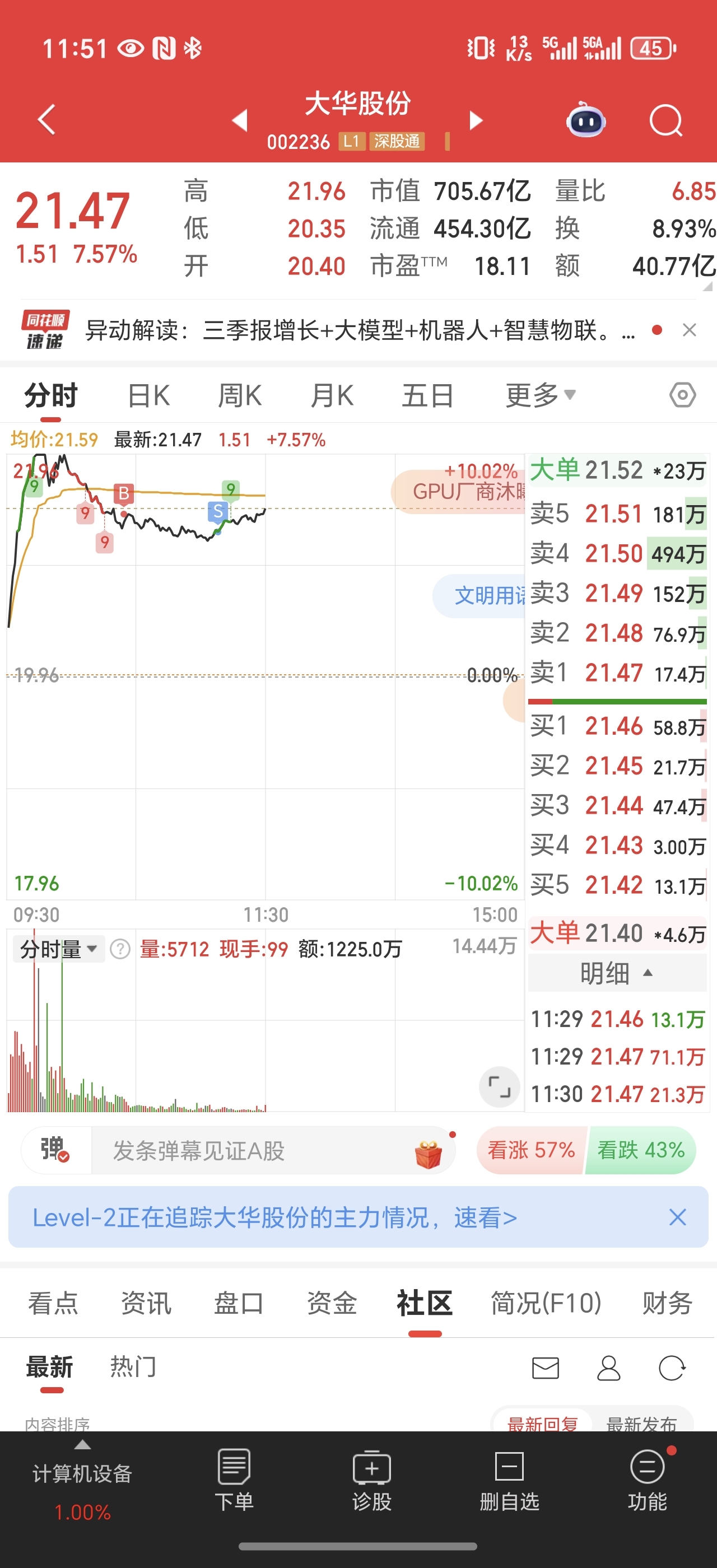 $大华股份(SZ002236)$ 我一卖就涨是吧