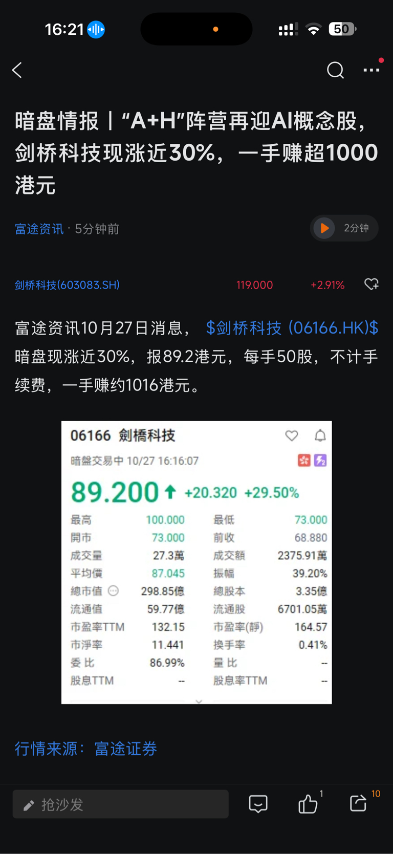 在里面的兄弟,给你个好消息,AI起飞了,港股剑桥32