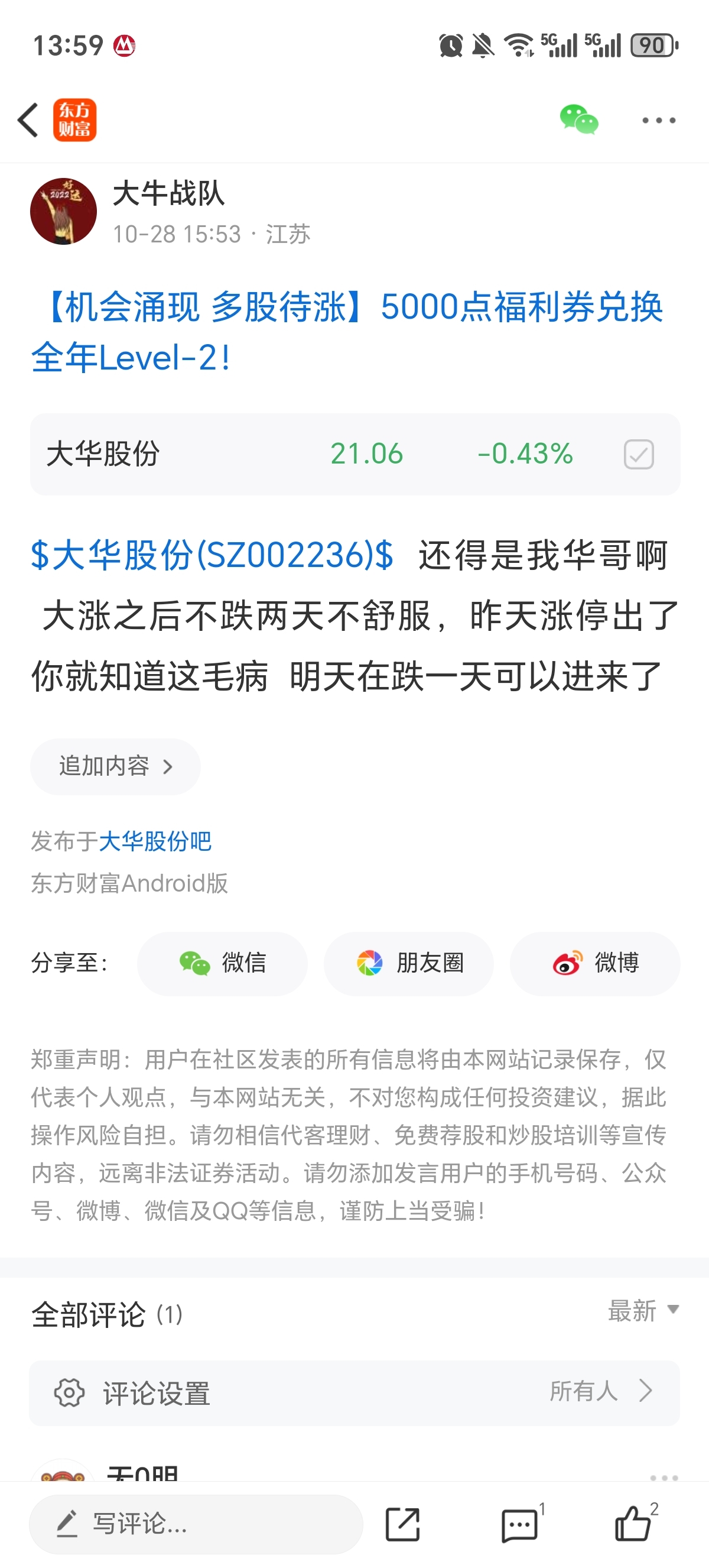 温馨提示: 1.根据《证券法》规定,禁止编造、传播虚假信息或者误导性信息,扰乱证券市场;2.用户在本社区发表的所有资料、言论等仅代表个人观点,与本网站立场无关,不对您构成任何投资建议。用户应基于自己的独立判断,自行决定证券投资并承担相应风险。《东方财富社区管理规定》