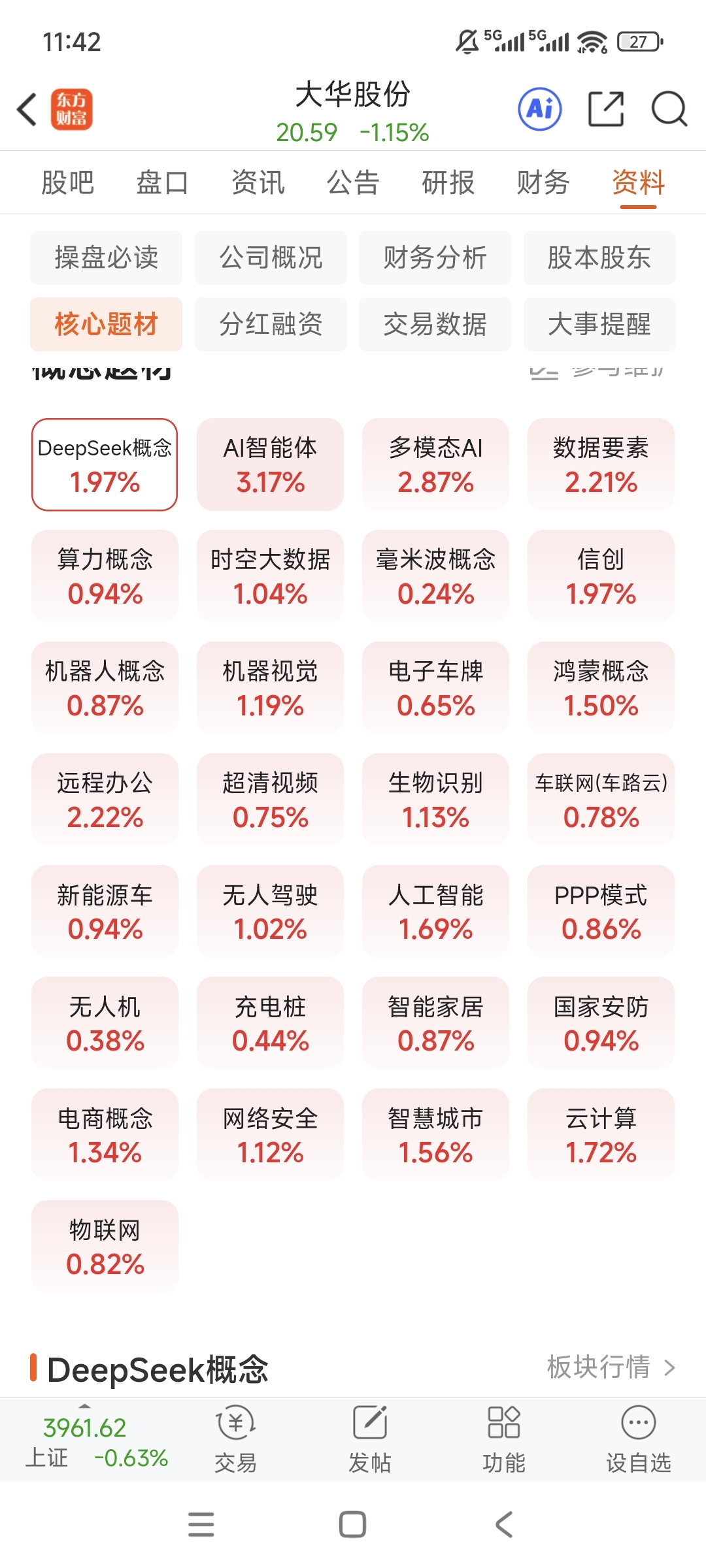 $大华股份(SZ002236)$ 所有概念都在涨,唯有你跌!
