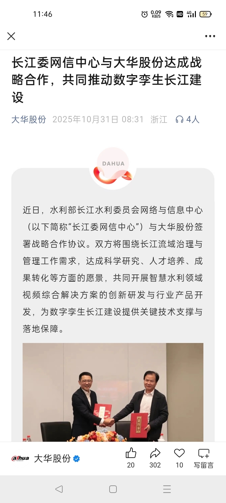 $大华股份(SZ002236)$ 国家水利部和大华股份合作: