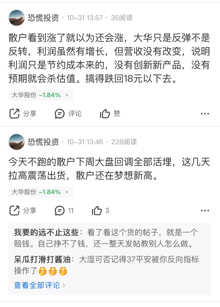 $大华股份(SZ002236)$ 上周五提醒散户撤退不听,很多不服。