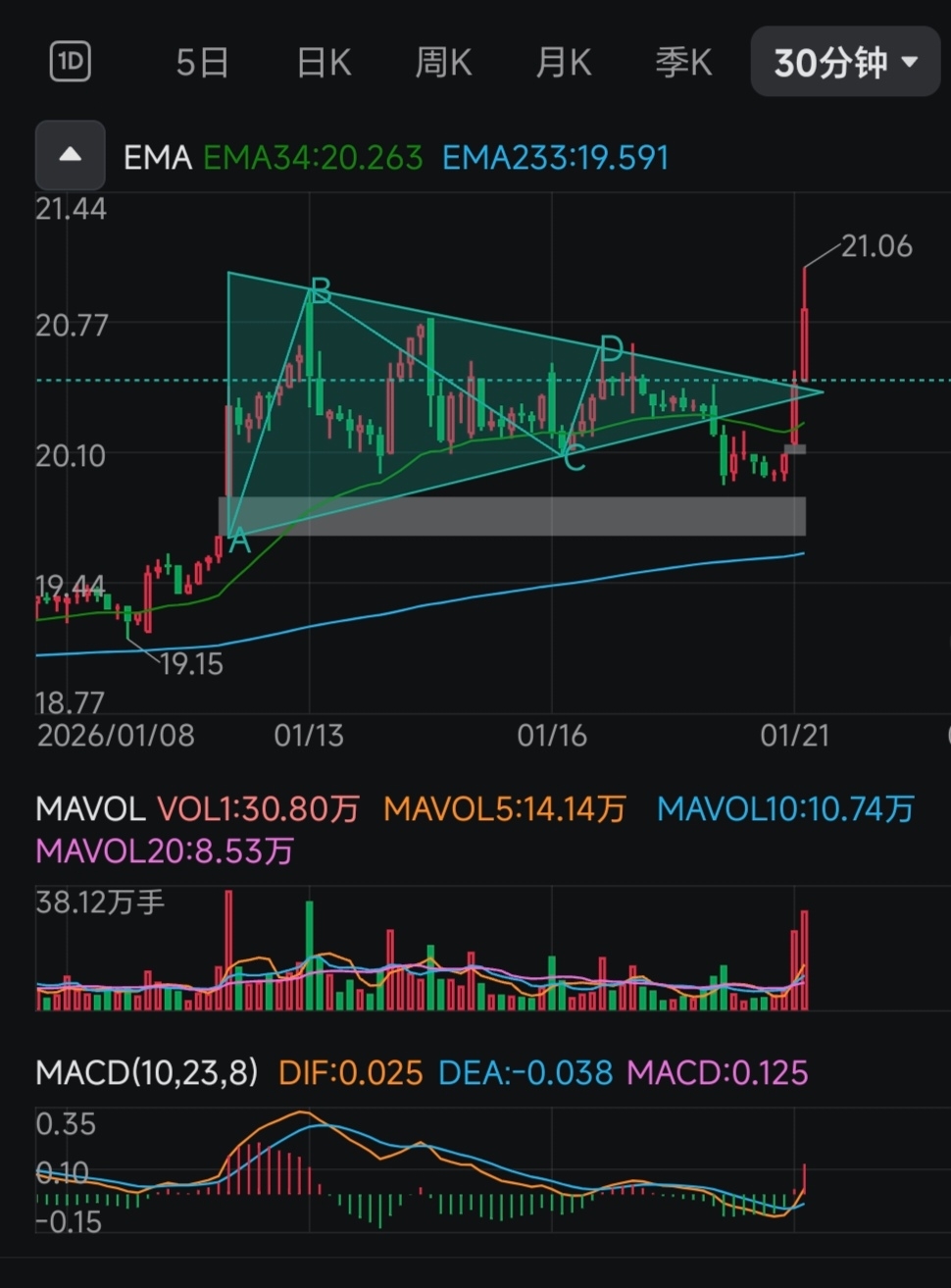 今日应该算作突破突破三角形整理上沿,进入平行四边形整理状态了。