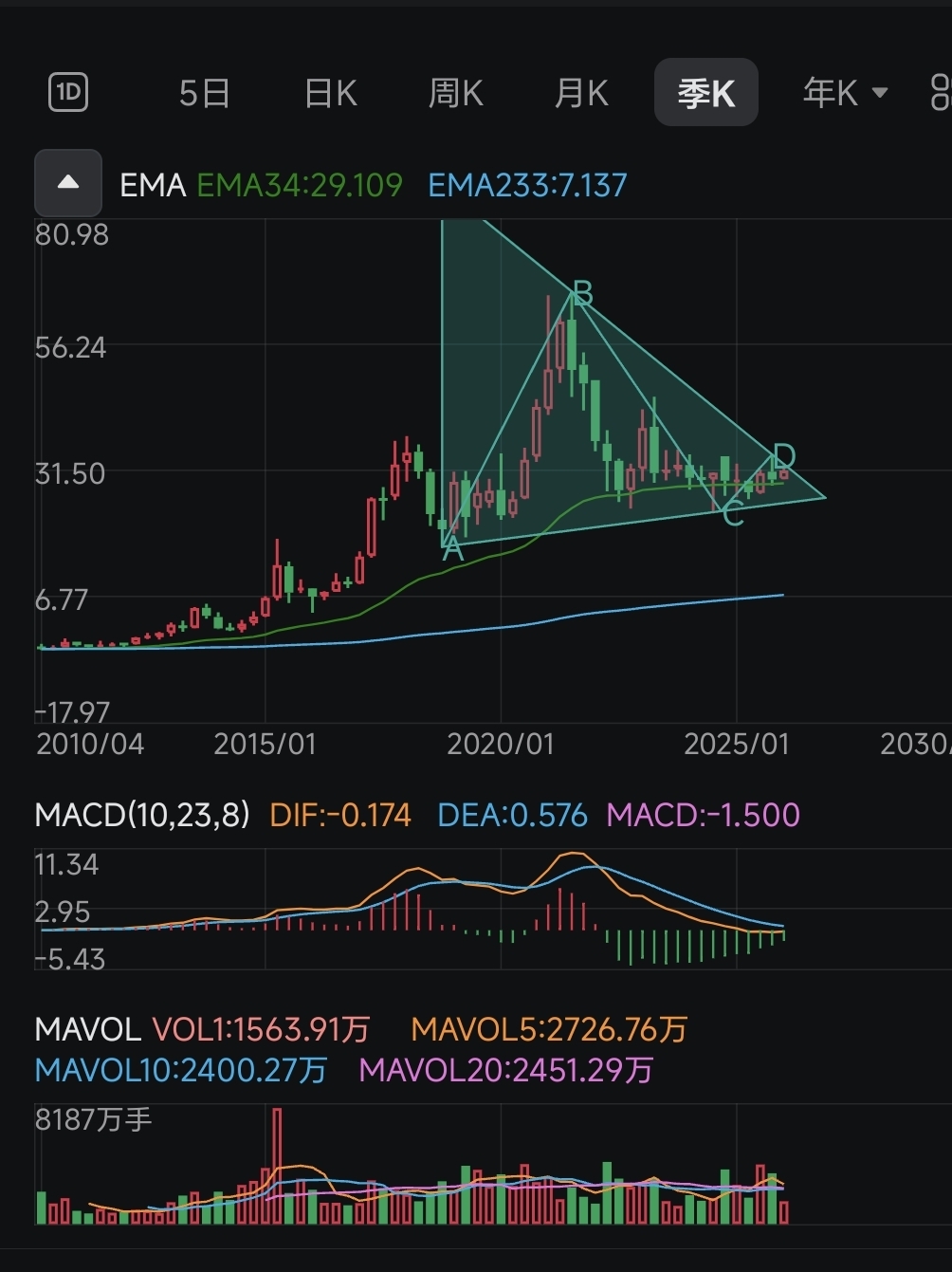 季线级别三角形整理结构