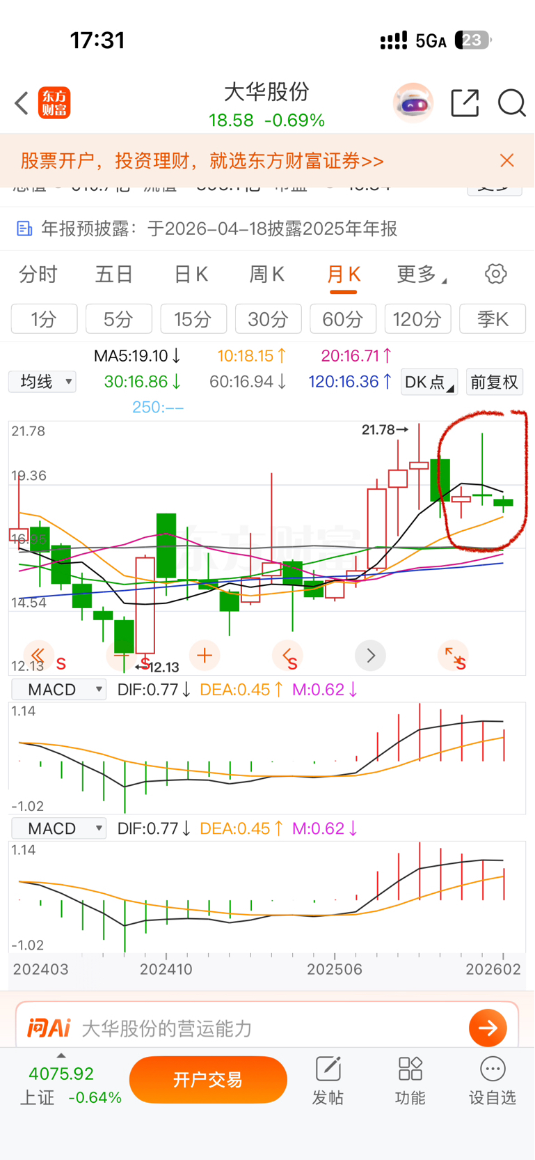 $大华股份(SZ002236)$ 这月线组合怎么那么别扭呢,像啥