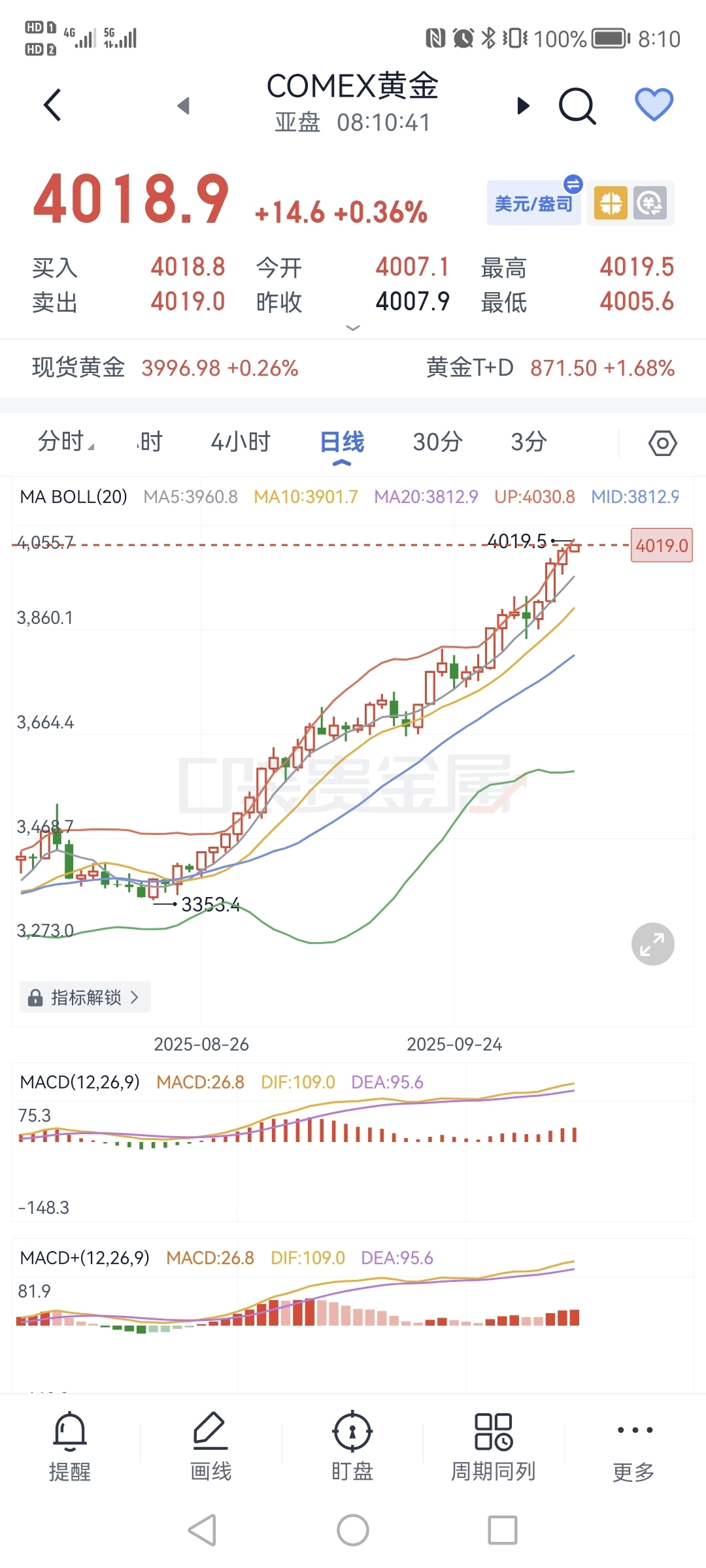 黄金又创新高了::只要今天不跌:明天我们中国黄金股就涨。国庆节黄金都跌的十多年来